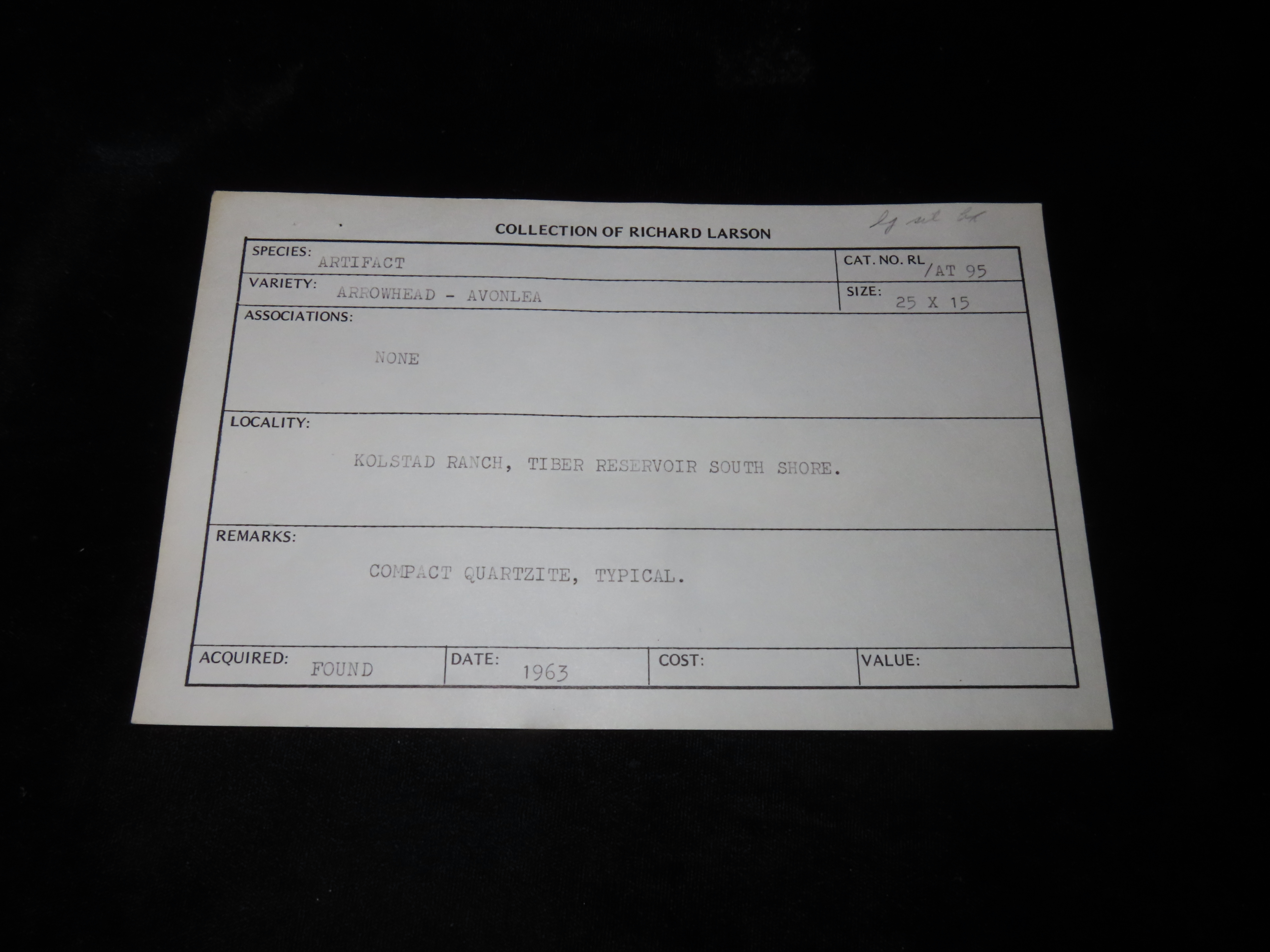 1″ Avonlea Type Kolstad Ranch, Tiber Reservoir South Shore,1963. Compact Quartzite Typical