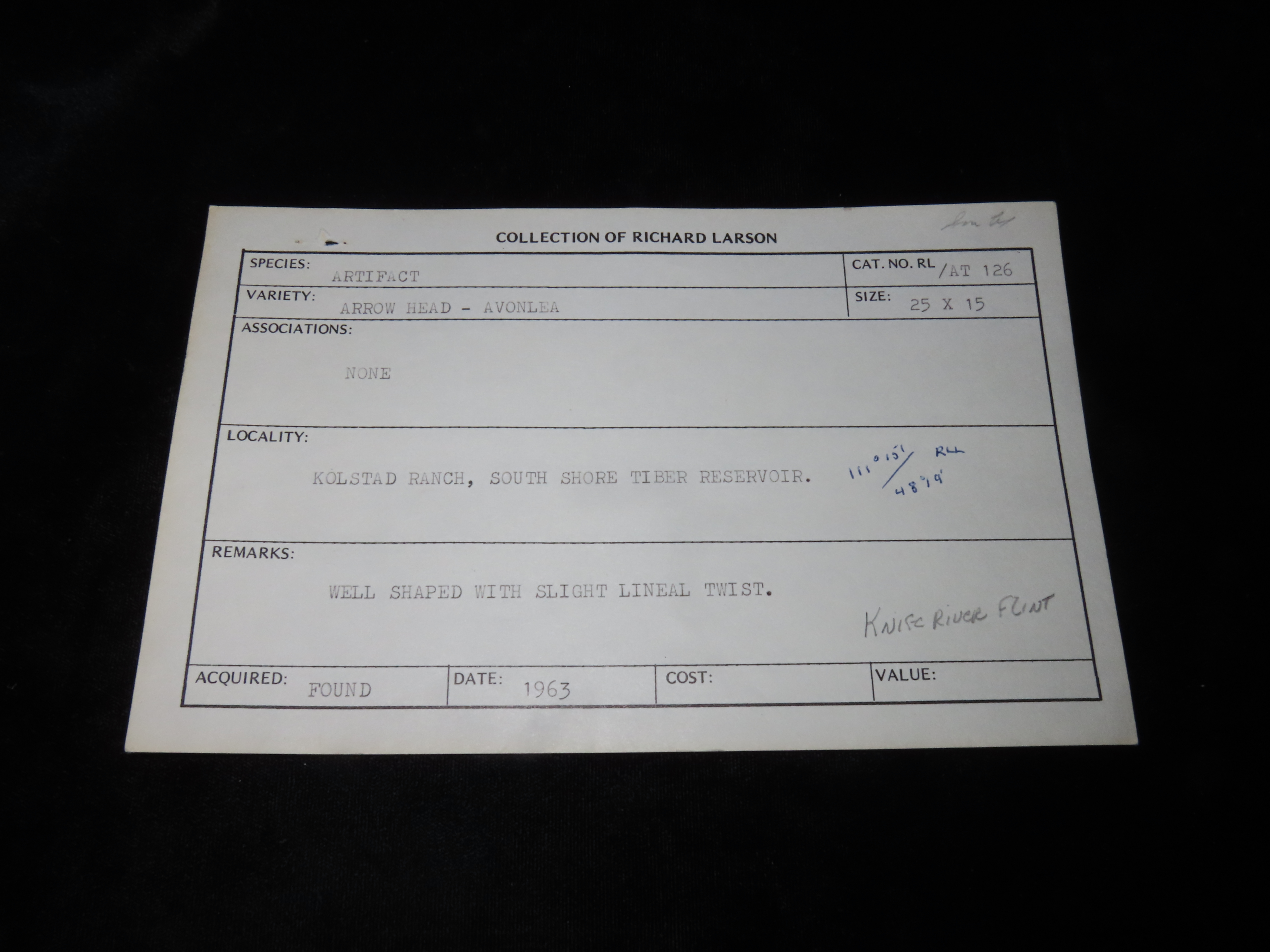15/16″ Translucent Avonlea Type, Found on the Kolstad Ranch, South Shore of Tiber Reservoir in 1963, Ex Richard Larson Collection