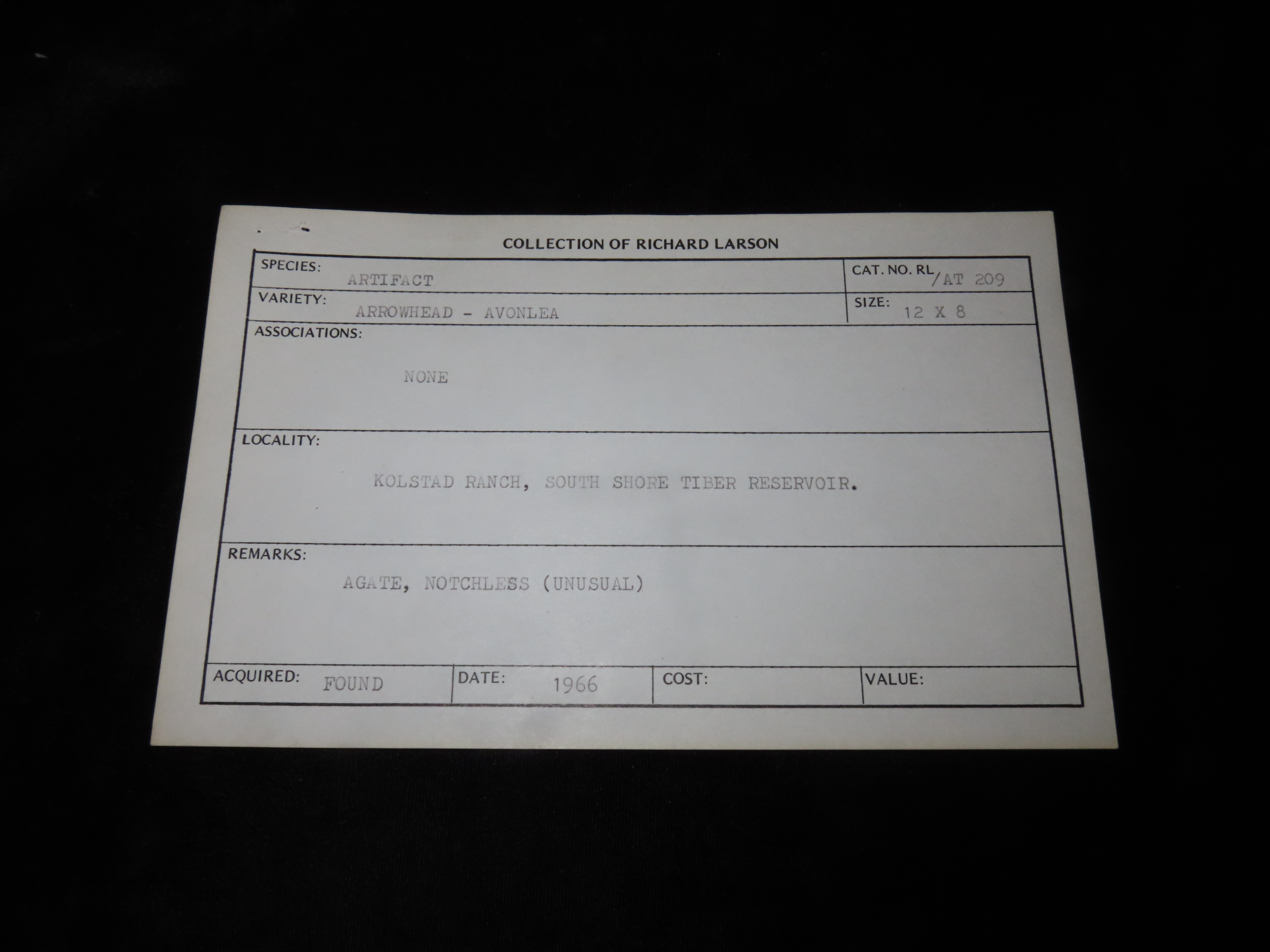7/16″ Translucent Avonlea Type, Found on the Kolstad Ranch, South Shore of Tiber Reservoir in 1963, Ex Richard Larson Collection