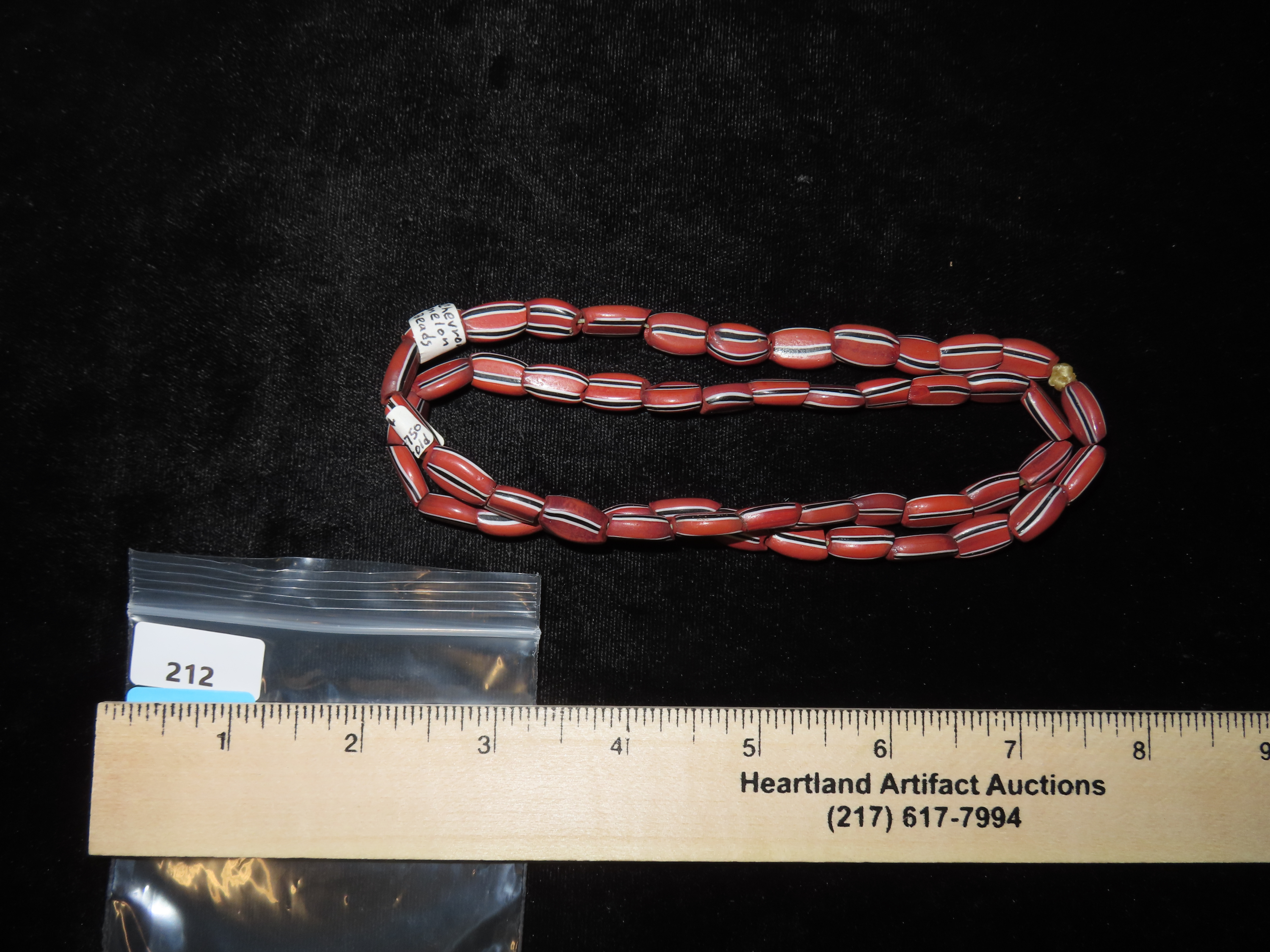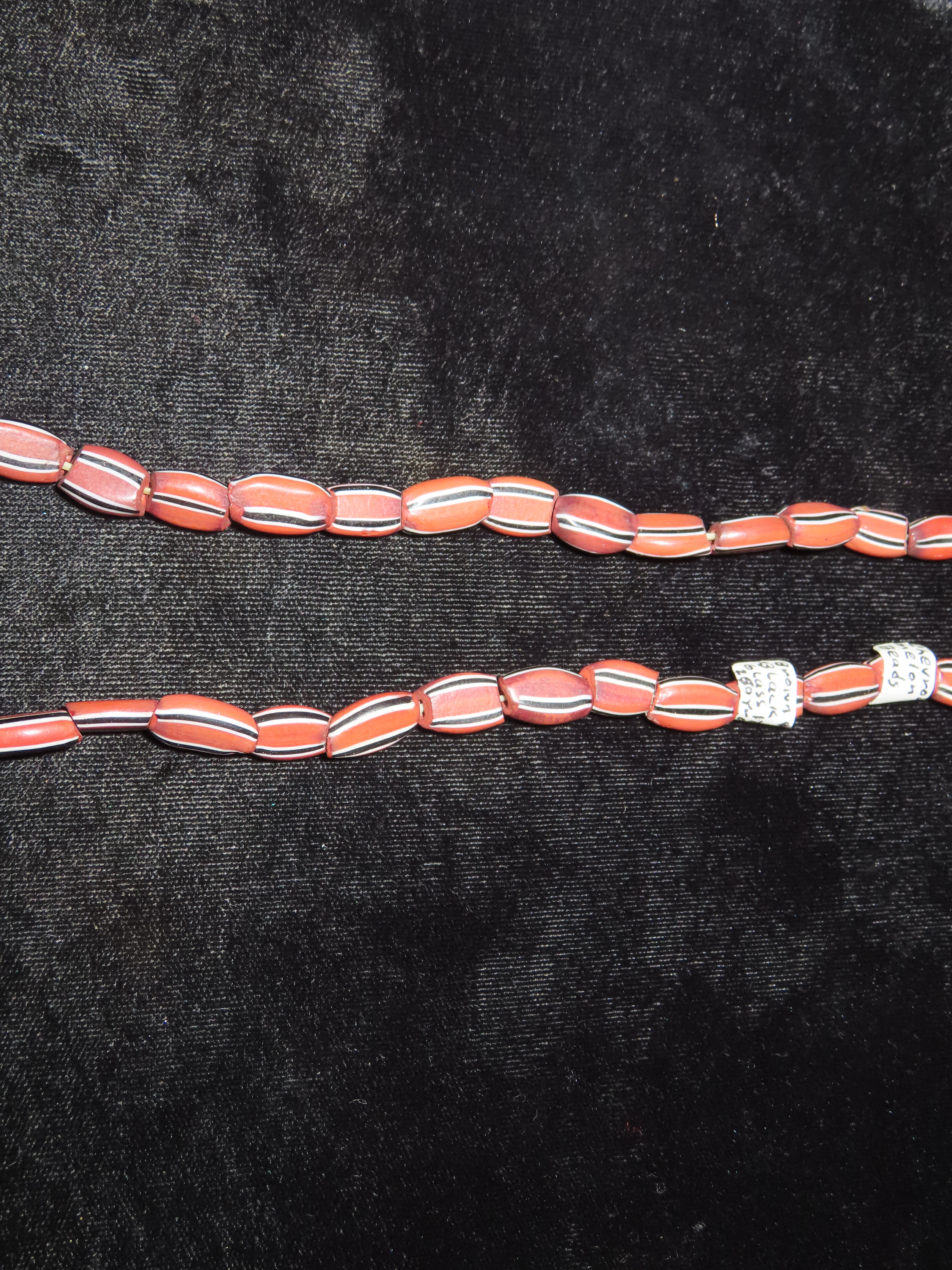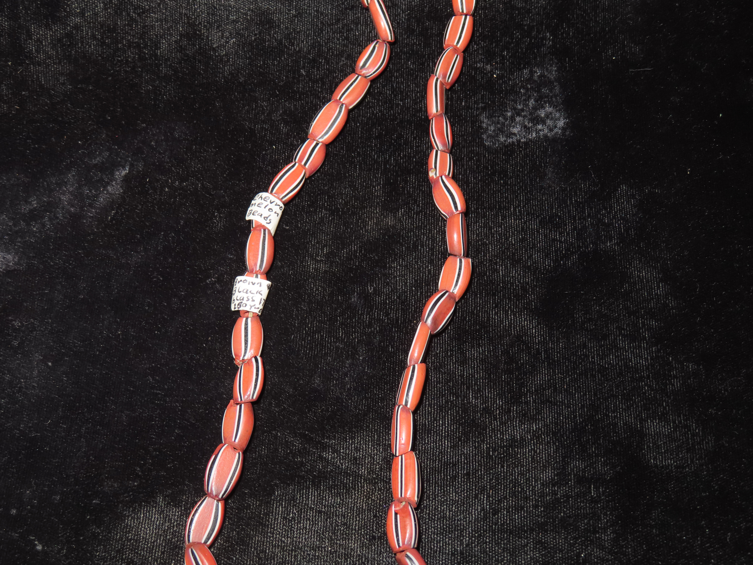 Chevron Melon Beads. Brown & Black Glass. 1750s., Ex. Herbert Mangold Collection