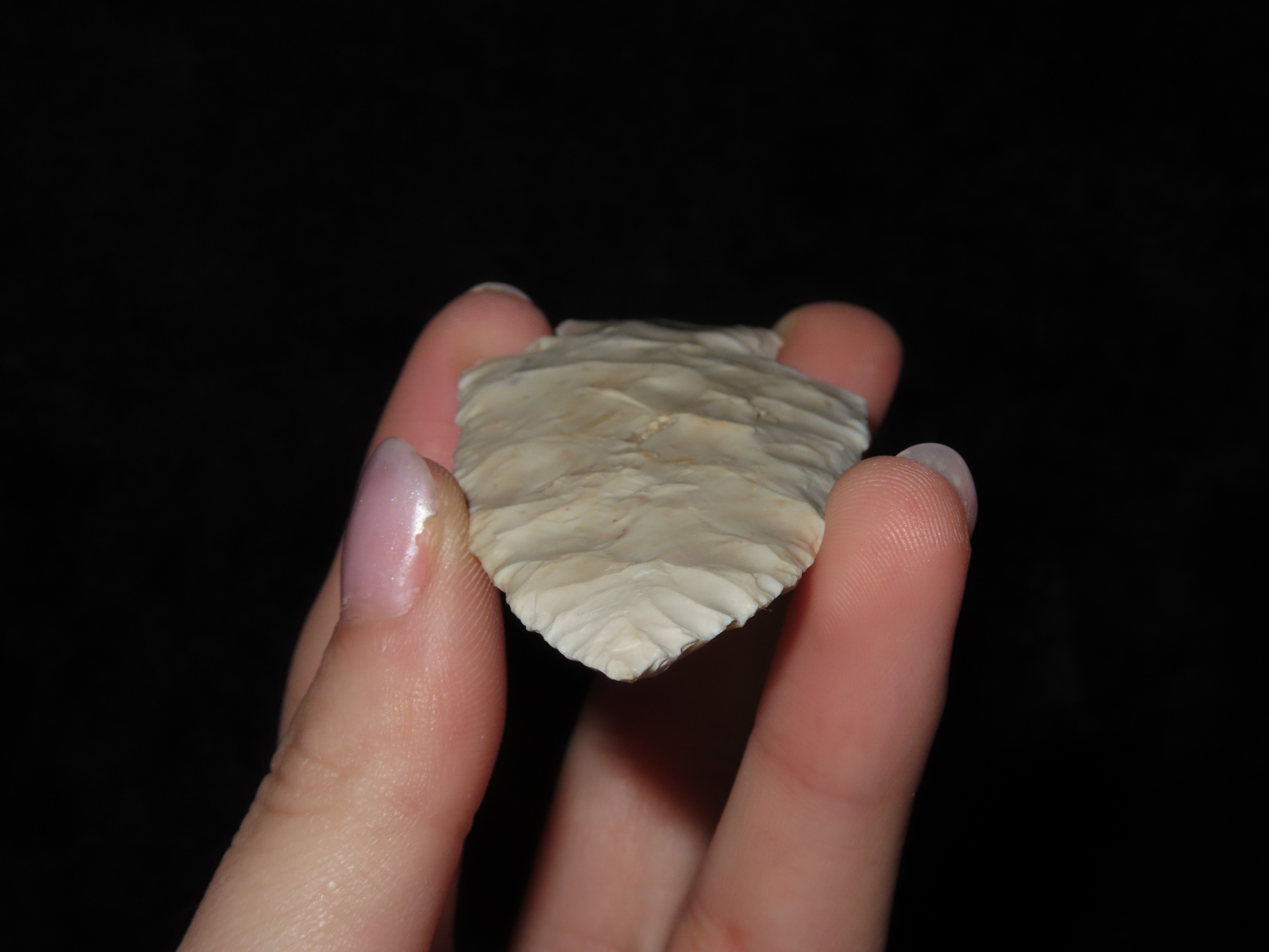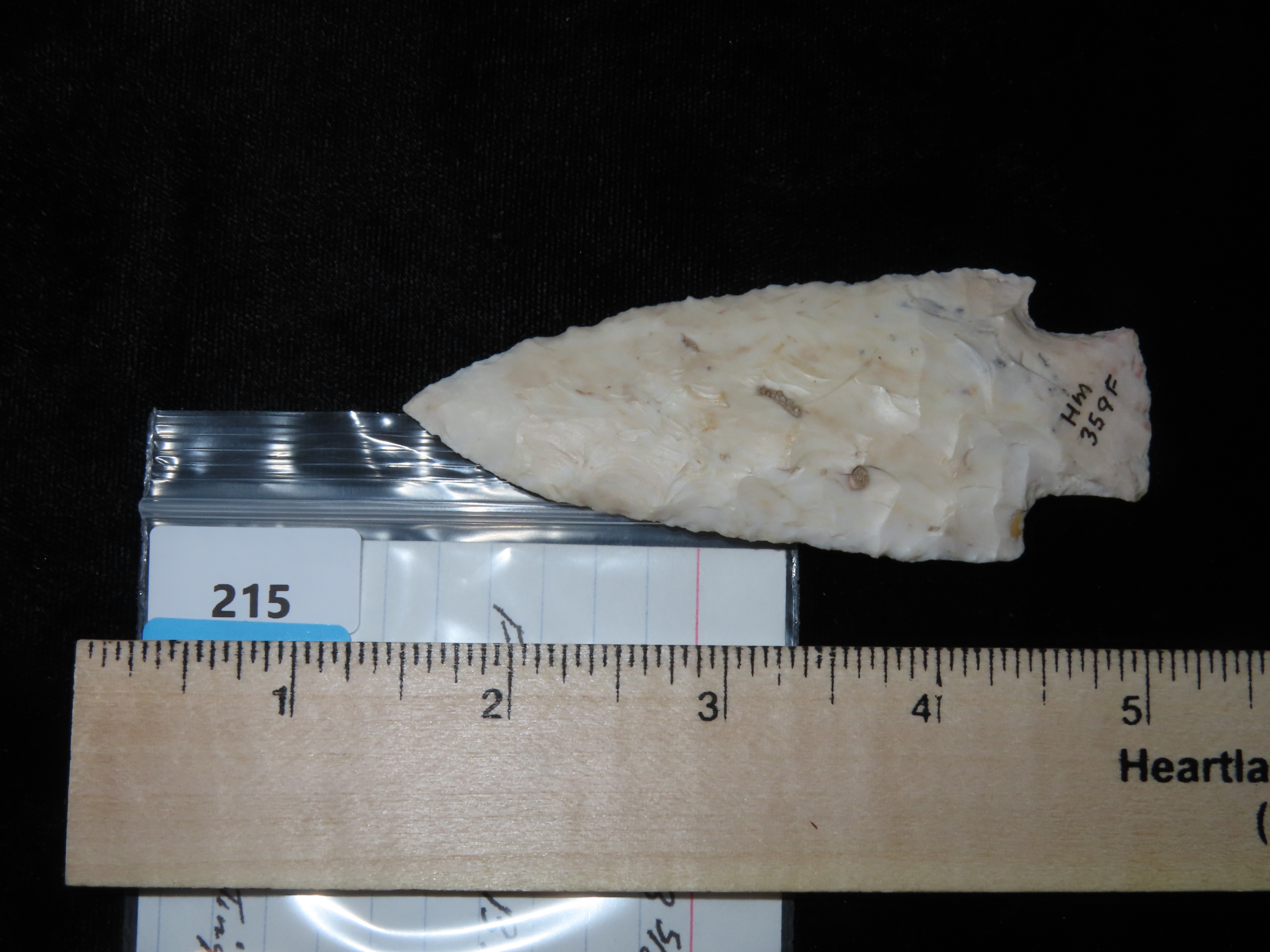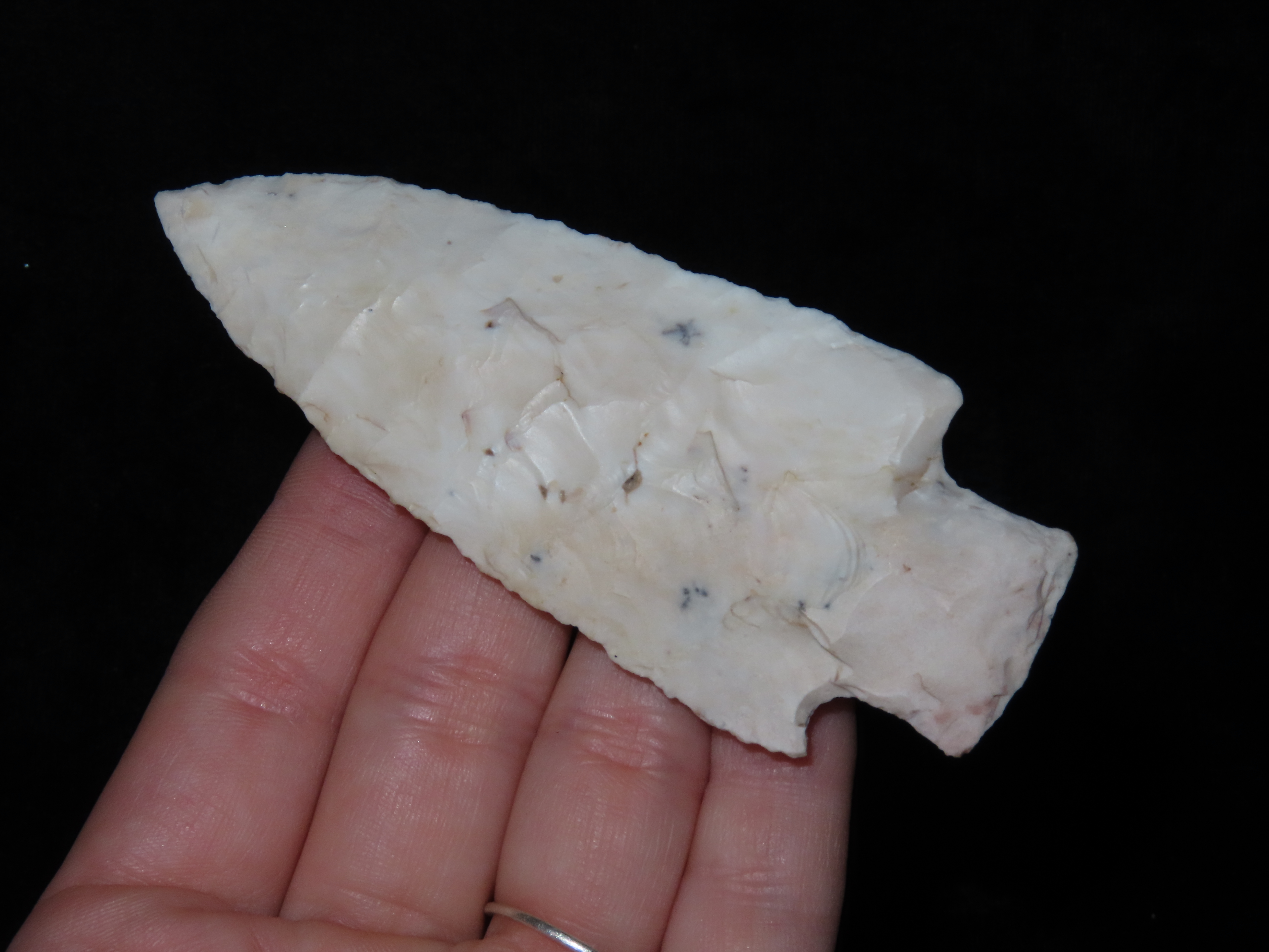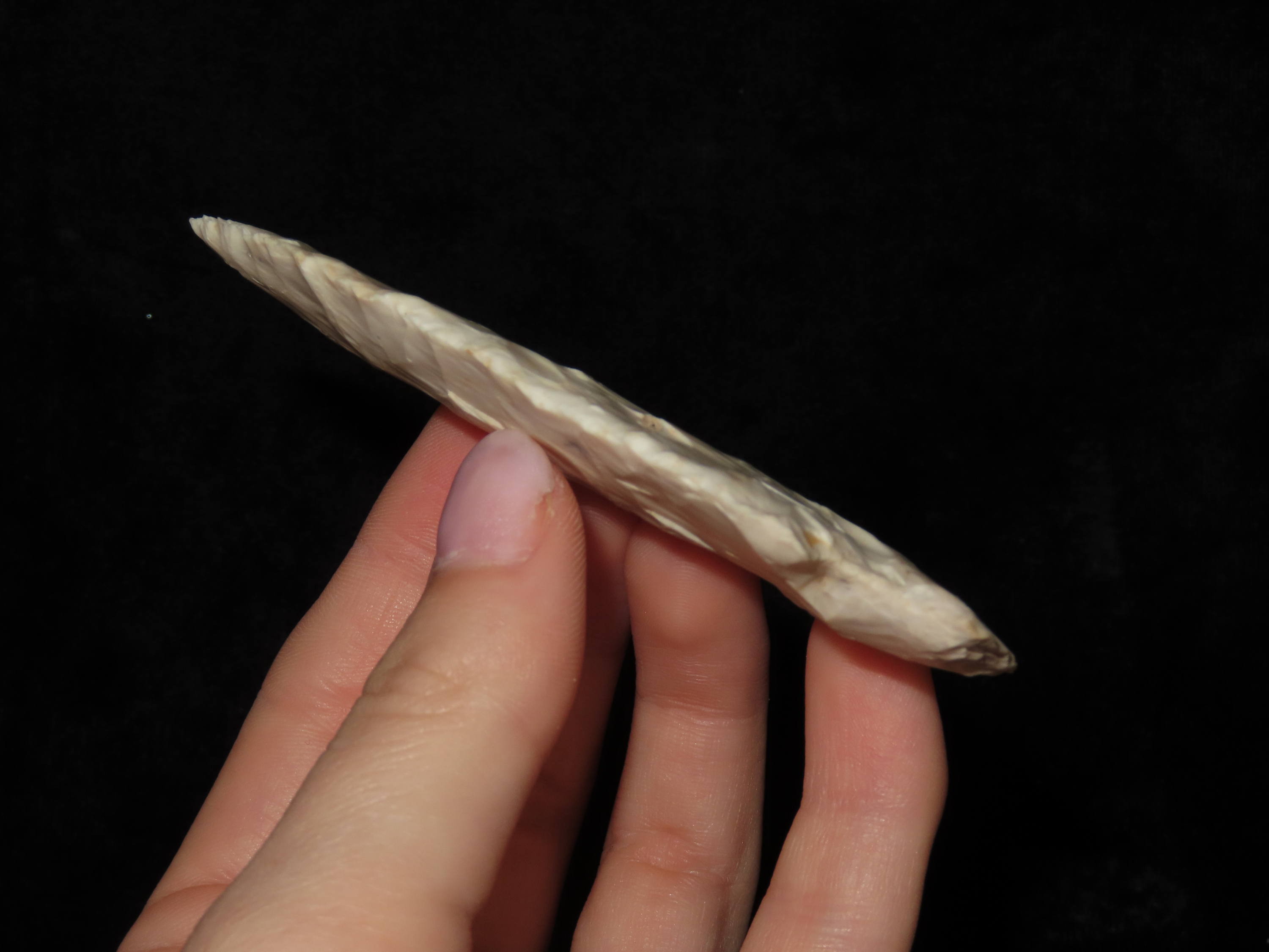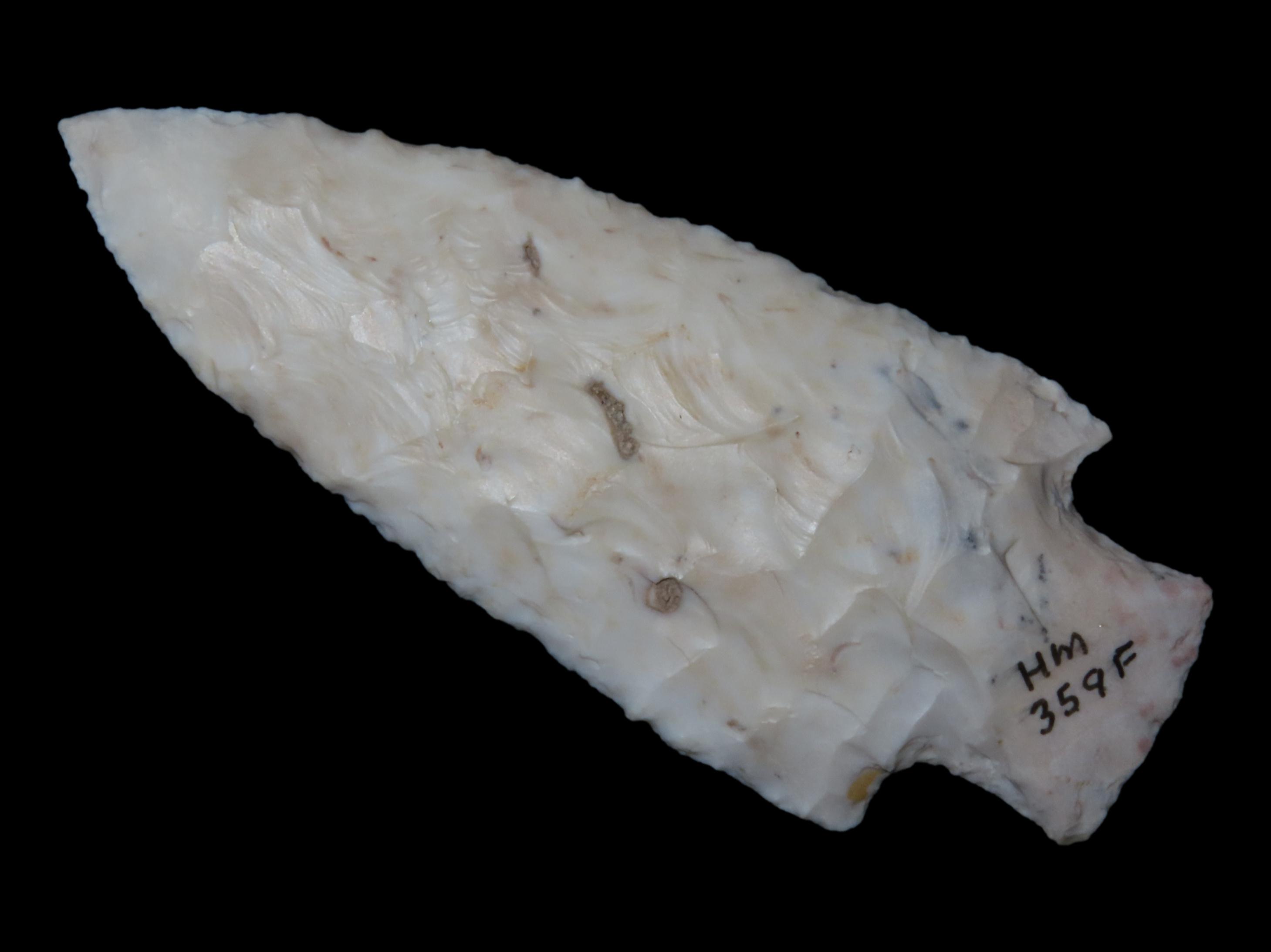 3 5/8″ x 1 1/2″ Lange. White Burlington. 1,000 – 6,000 BP. Brown Co, IL., Ex. Herbert Mangold Collection
