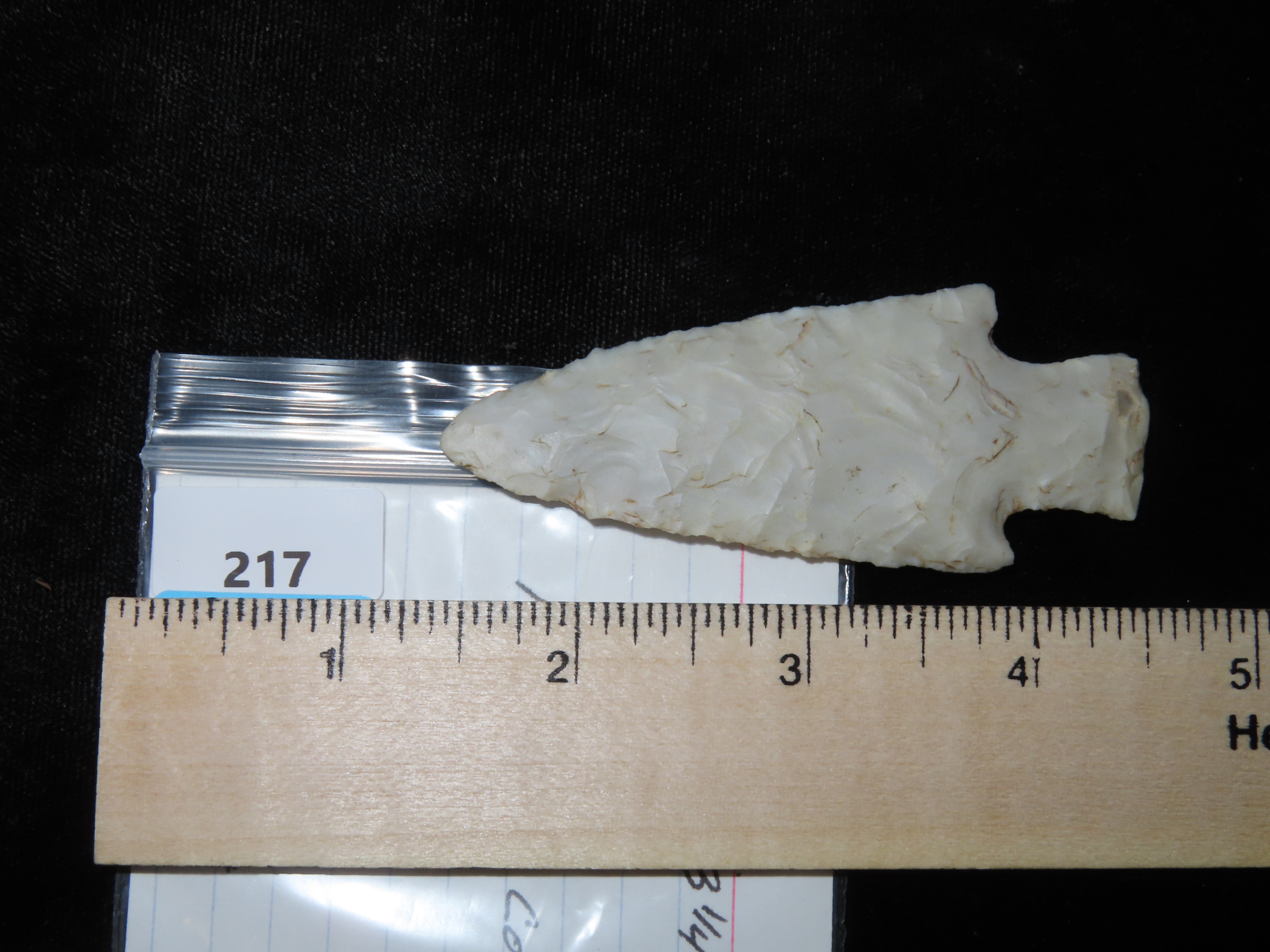 3 1/4" x 1 1/4" Hardin. Burlington. 8,500 BP. Cole Co, IL, Ex. Herbert Mangold Collection