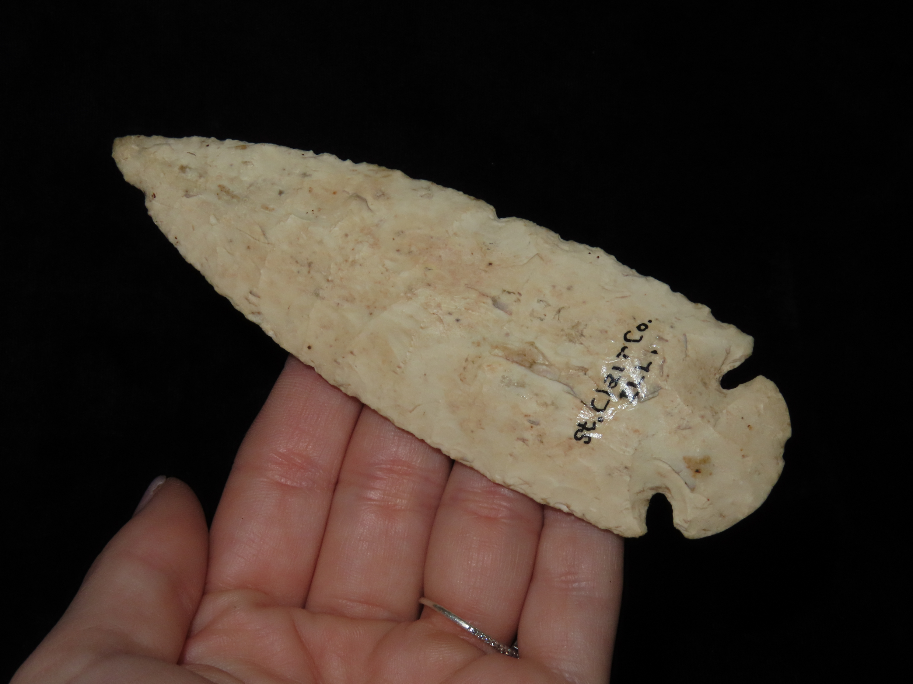 4 3/4″ x 1 9/16″ Dovetail Made of Burlington Chert, Motley COA, Found in St. Clair Co, IL.