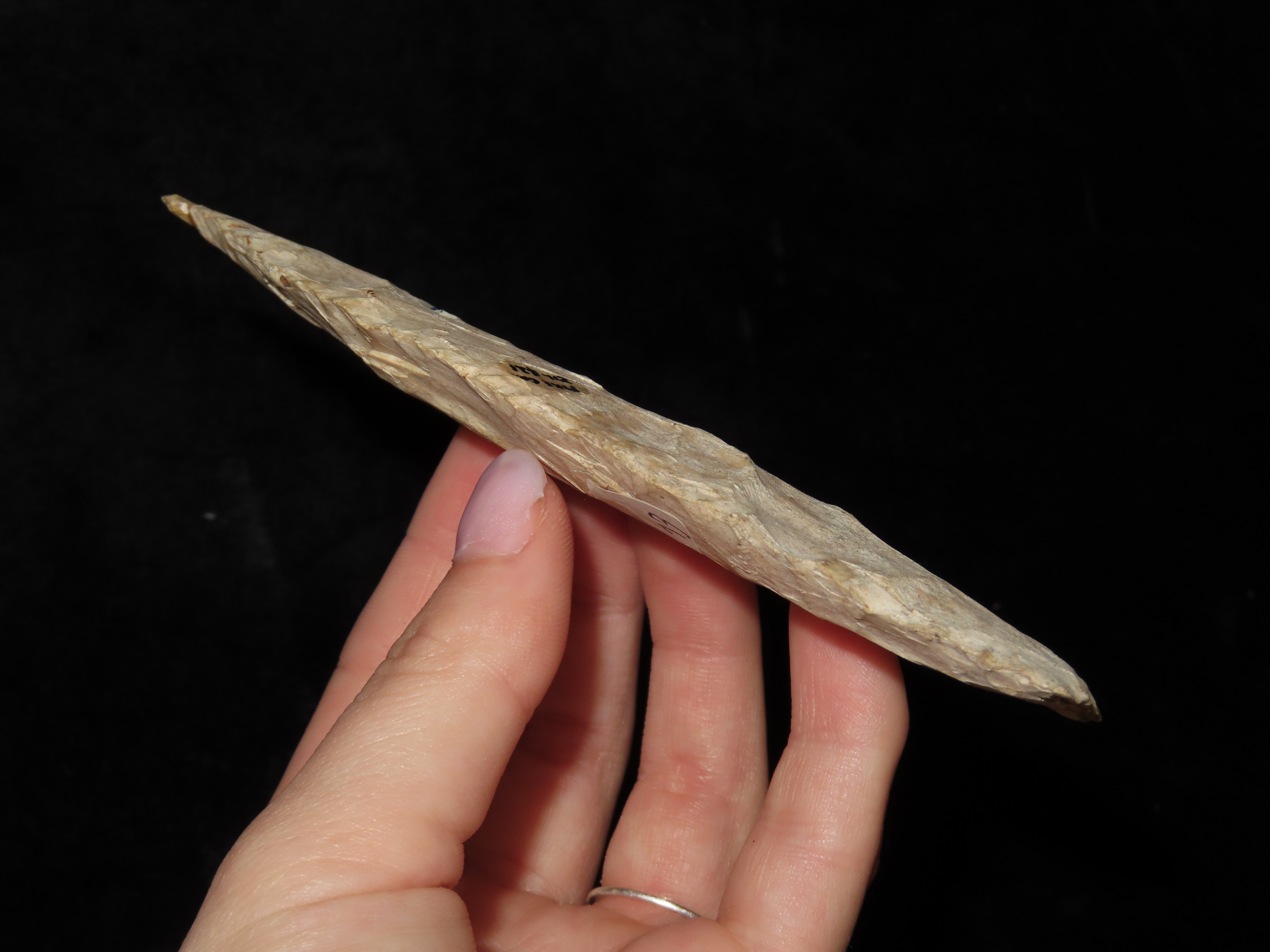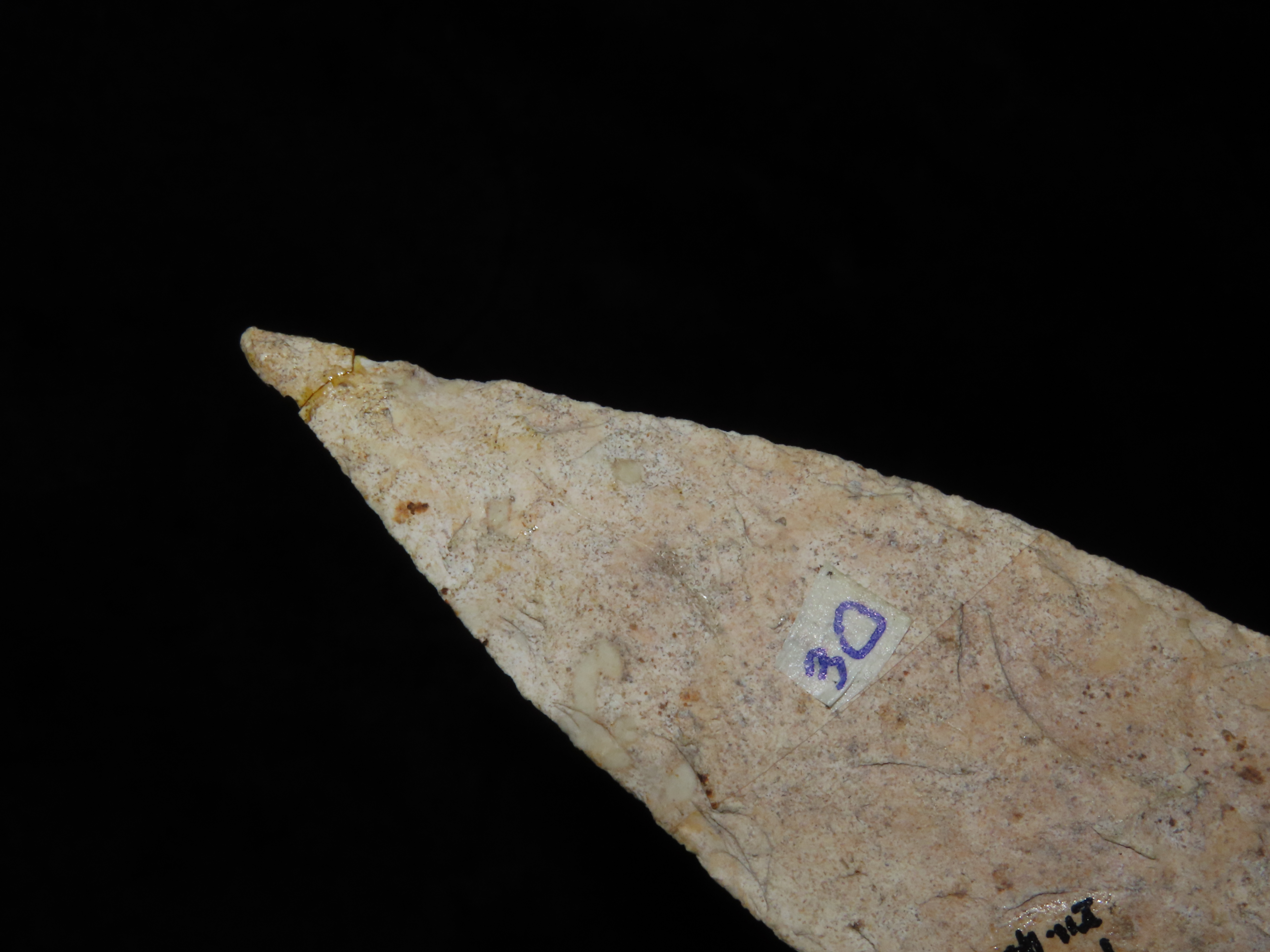 5 3/8″ Sedalia, Pike County, IL, Burlington, Ex. Ron Poore Collection, Tip Broken & Glued