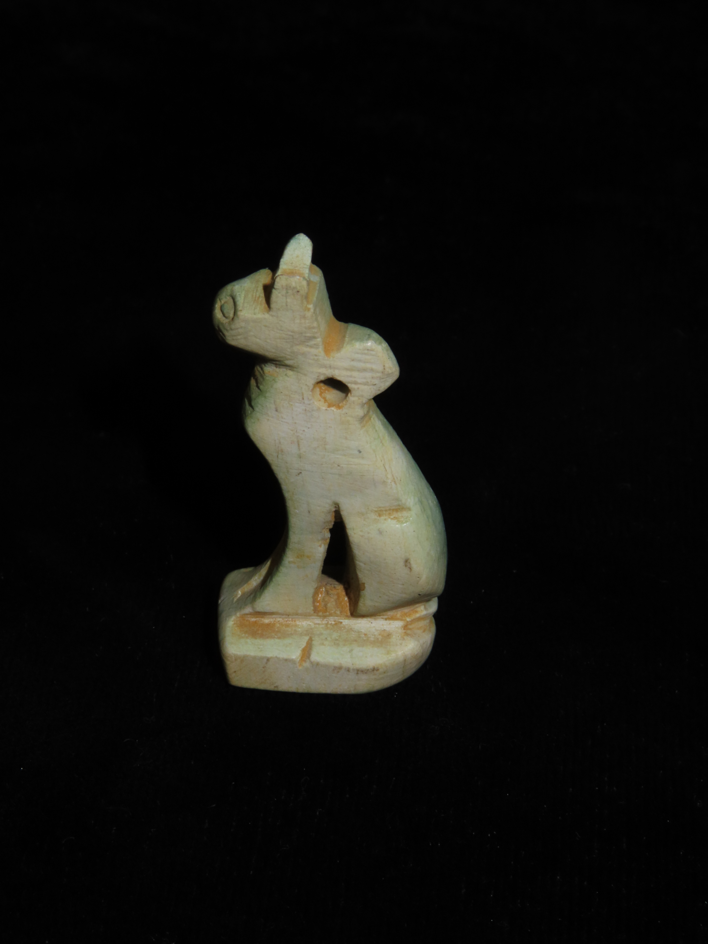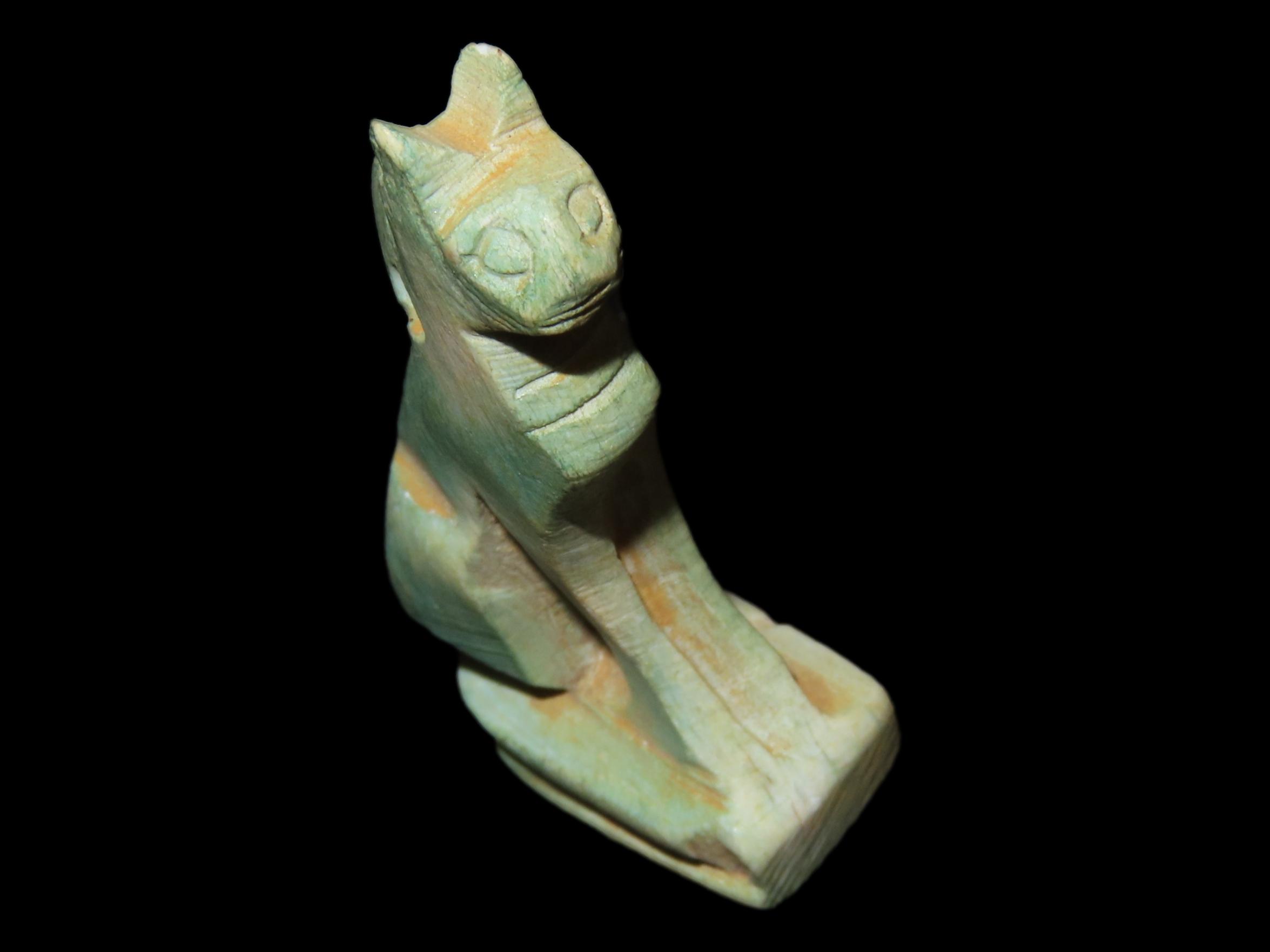 1 3/4″ x 7/8″ Antique Egyptian Stone Cat (Batstet) Amulet. Goddess of Pleasure