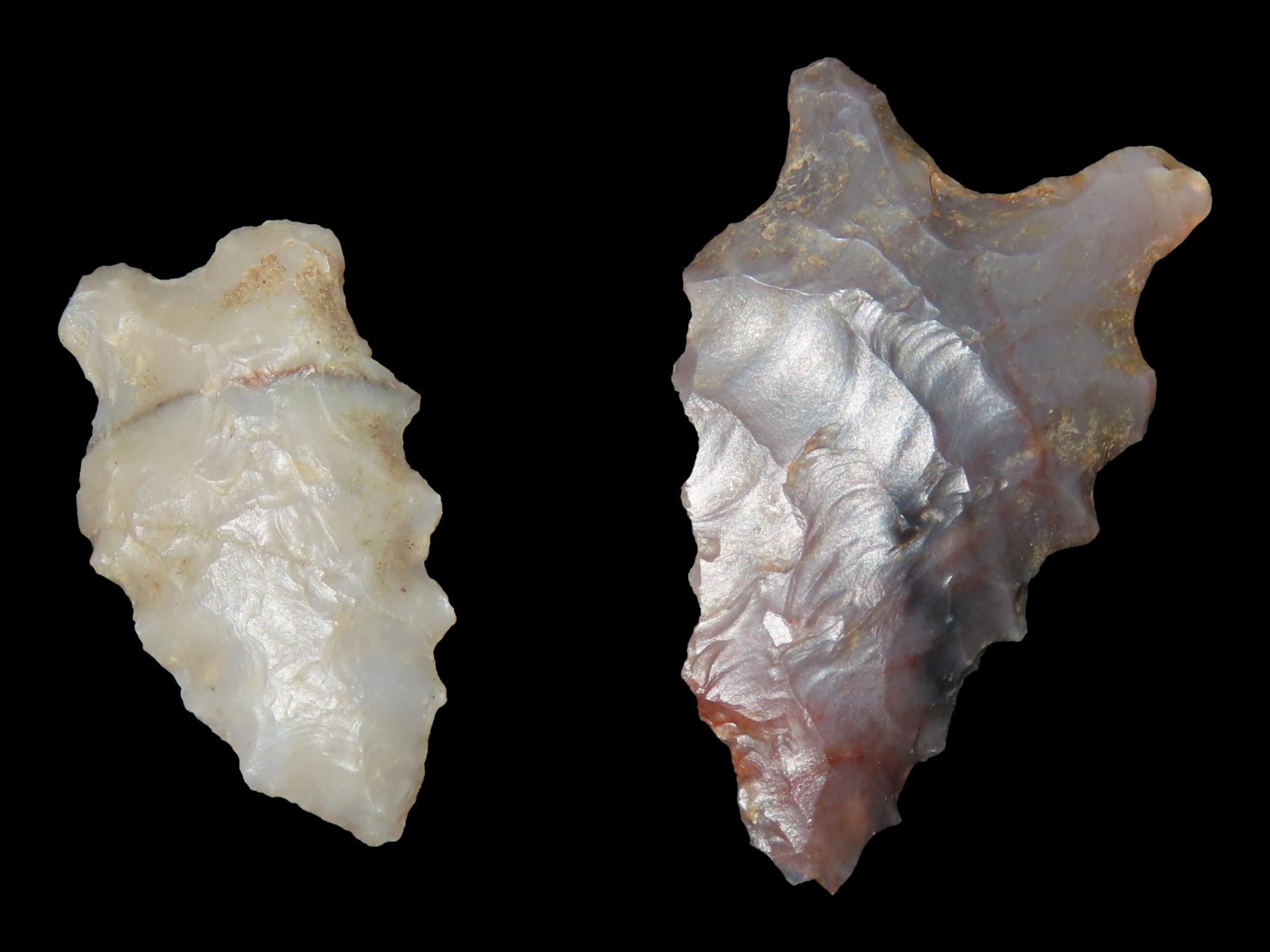 Lot of 2 Archaic Dalton Agate Arrowheads