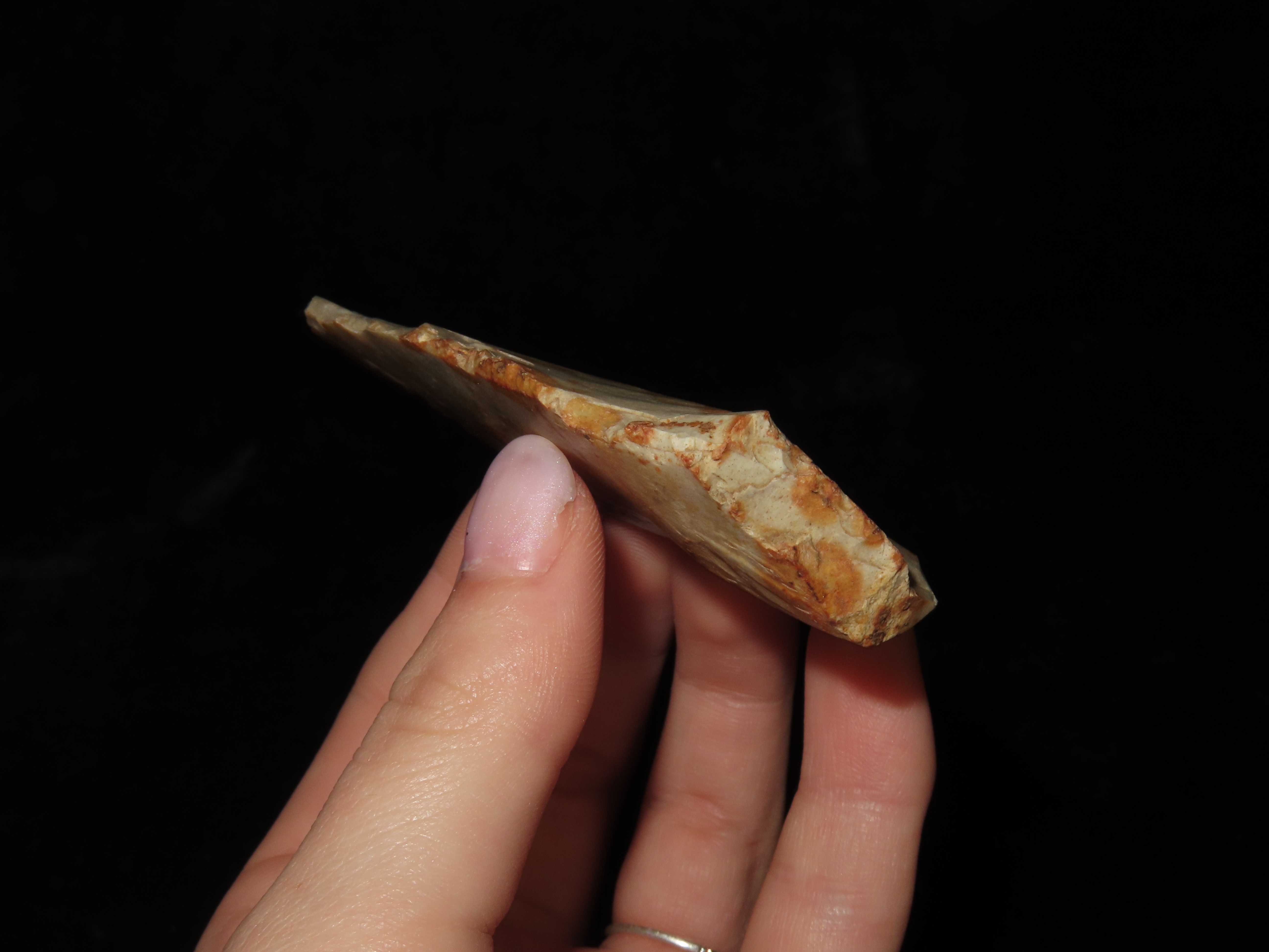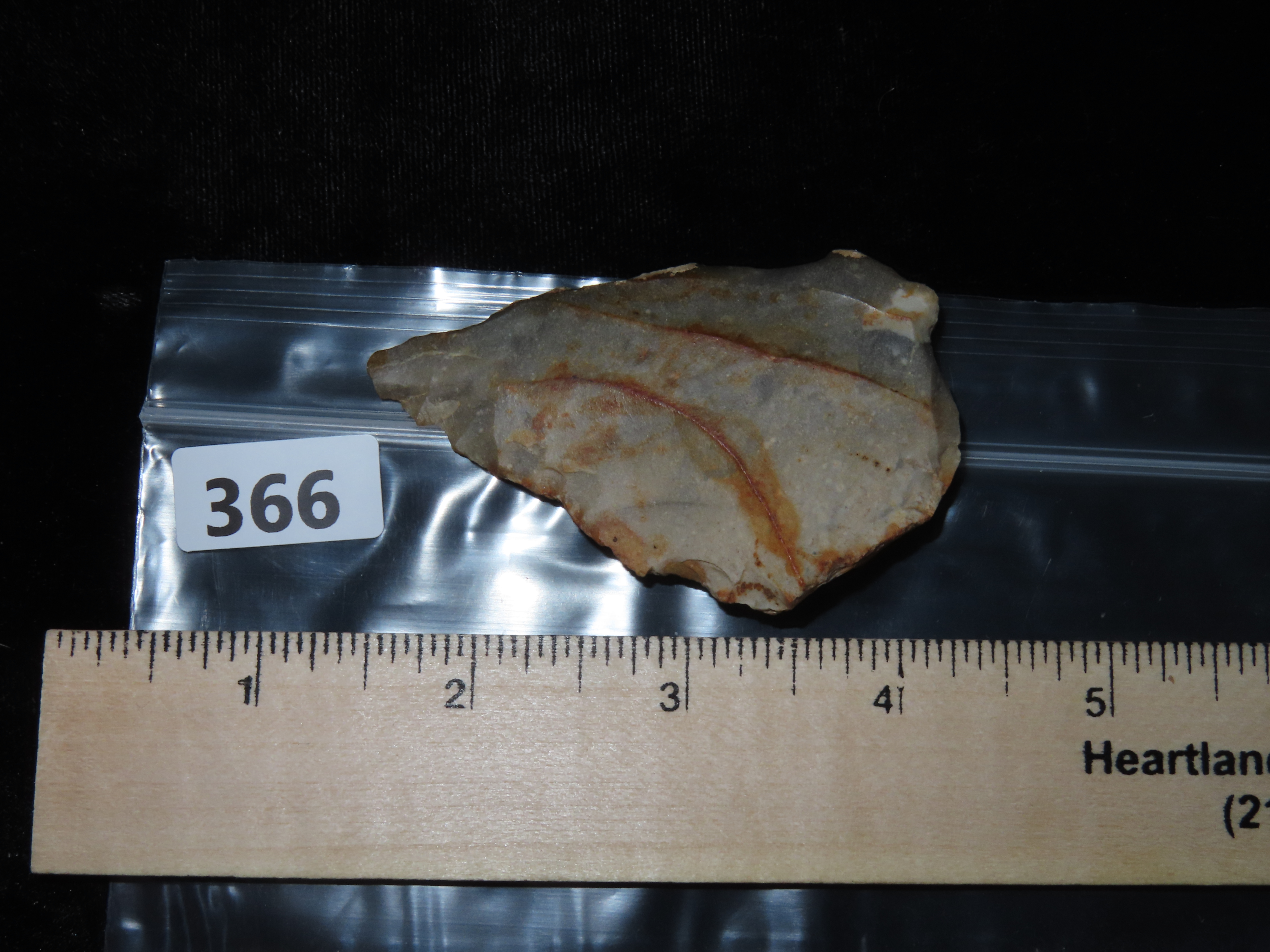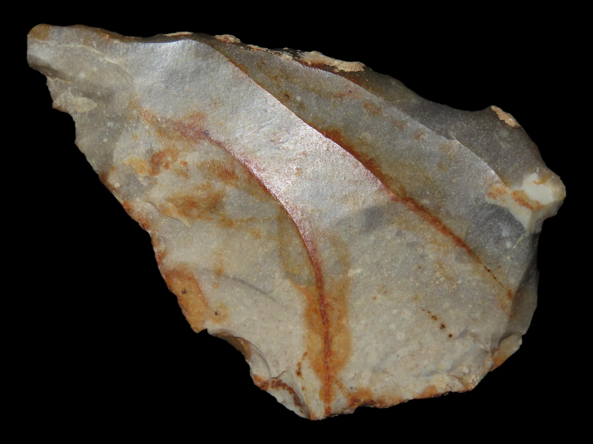 2 7/8″ x 1 3/4″ x 1/2″ Levallois Arrowhead. Gray prepared core. Belgium.