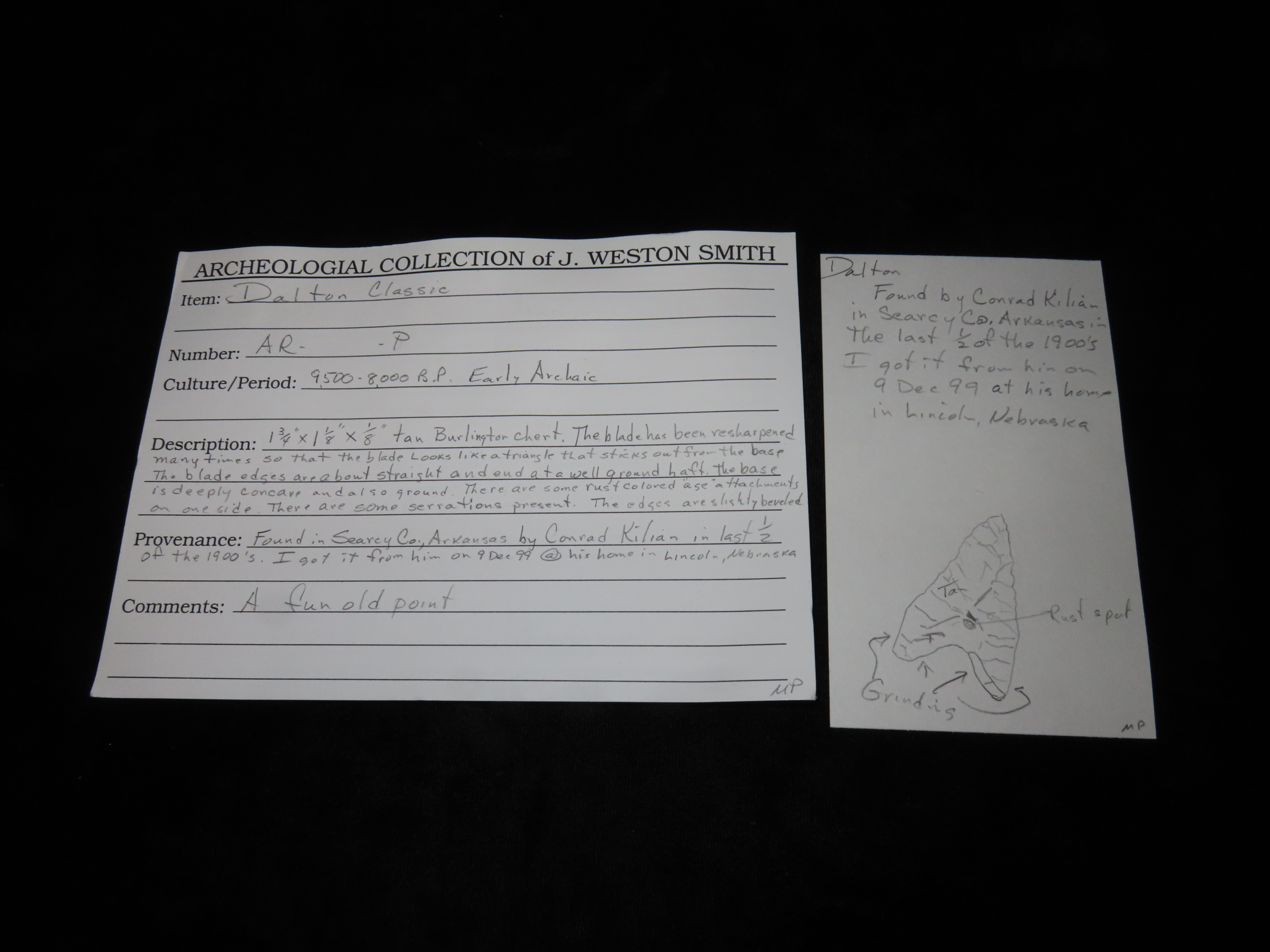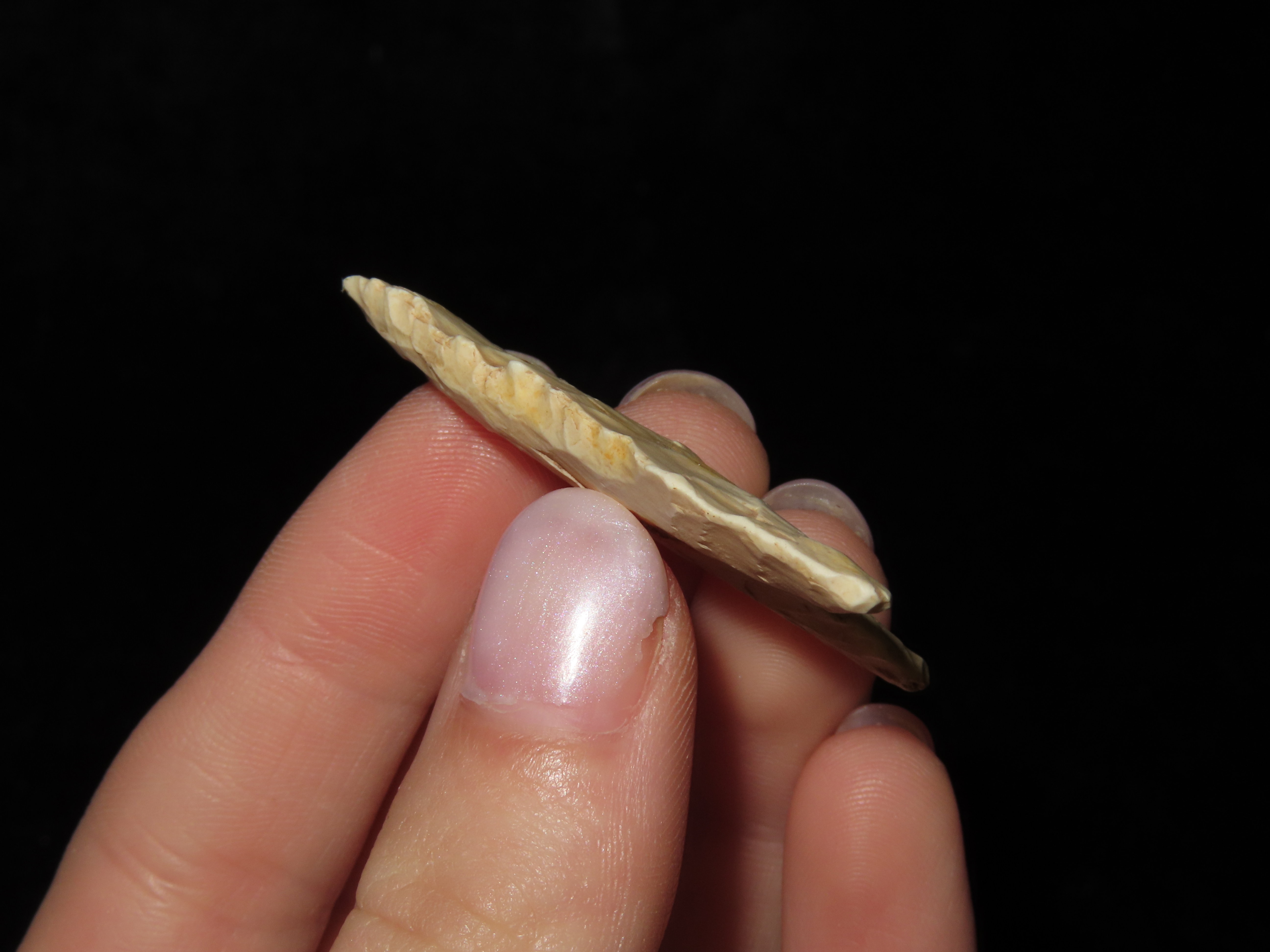 1 3/4″ x 1 1/8″ x 1/8″ Dalton Classic. Tan Burlington Chert. Searcy Co, AR