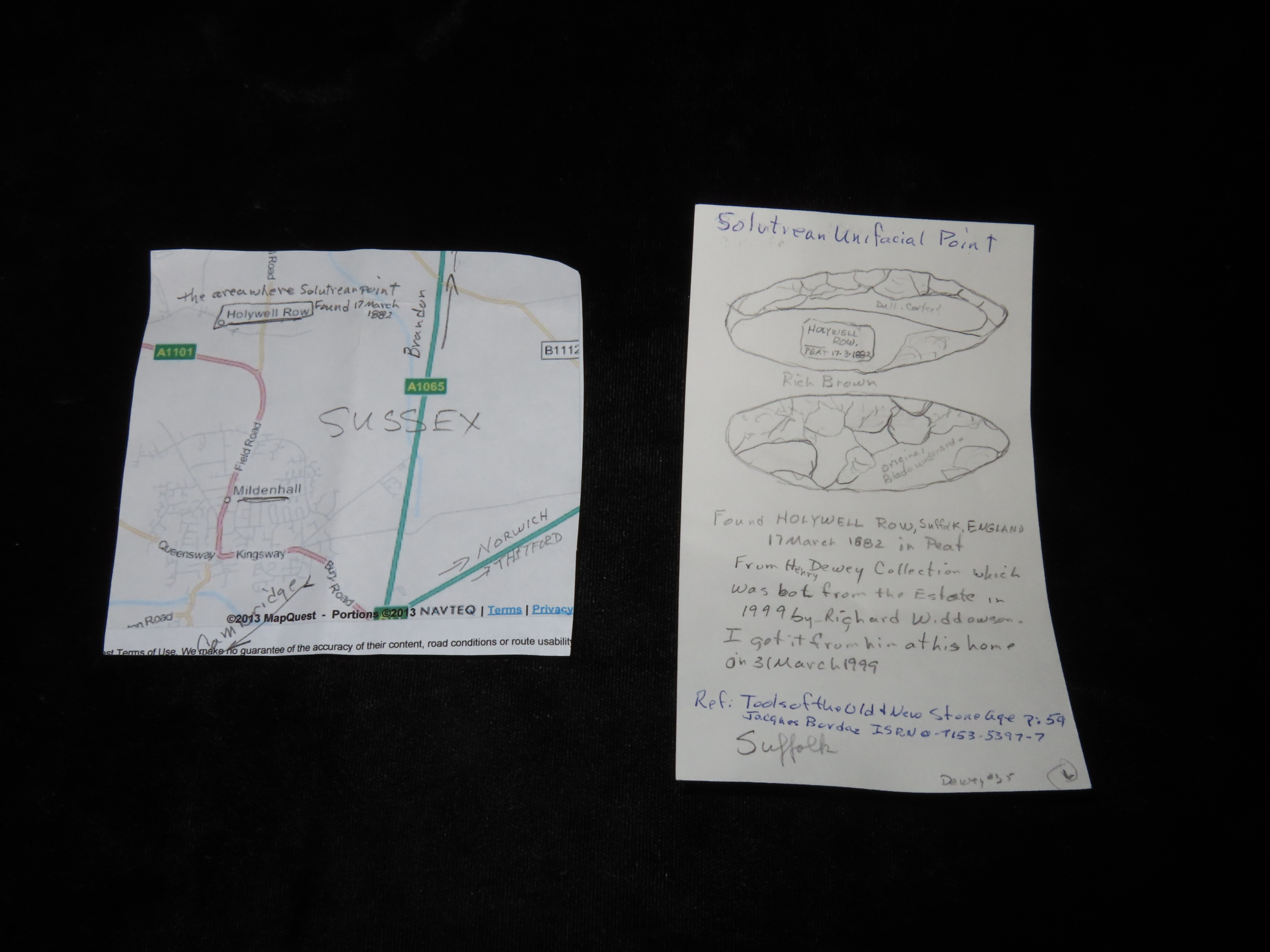 Solutrean Unifacial Point, Found in Holywell Row, Suffork, England on March 17th, 1882 in Peat, Ex. Henry Dewey Collection