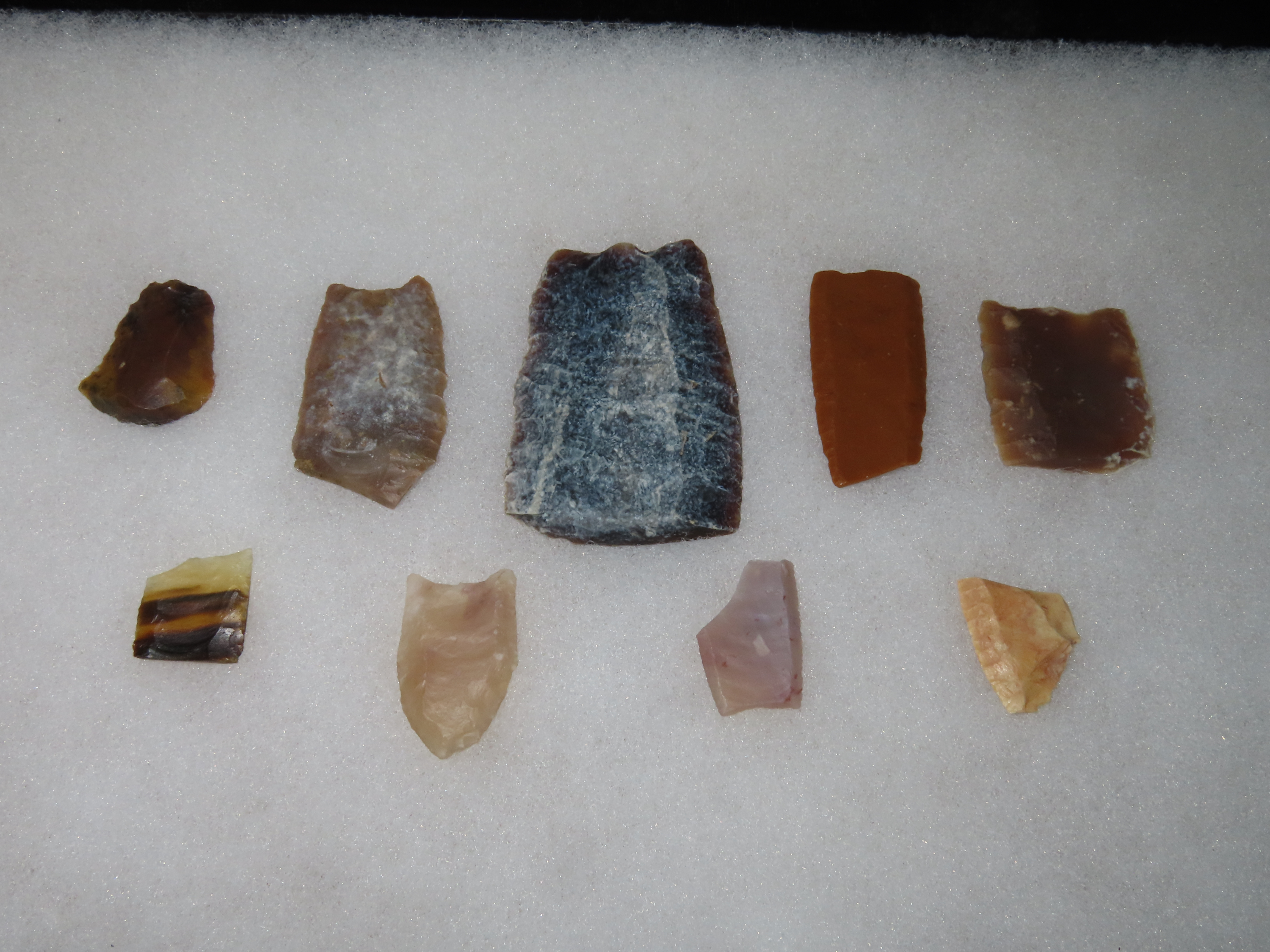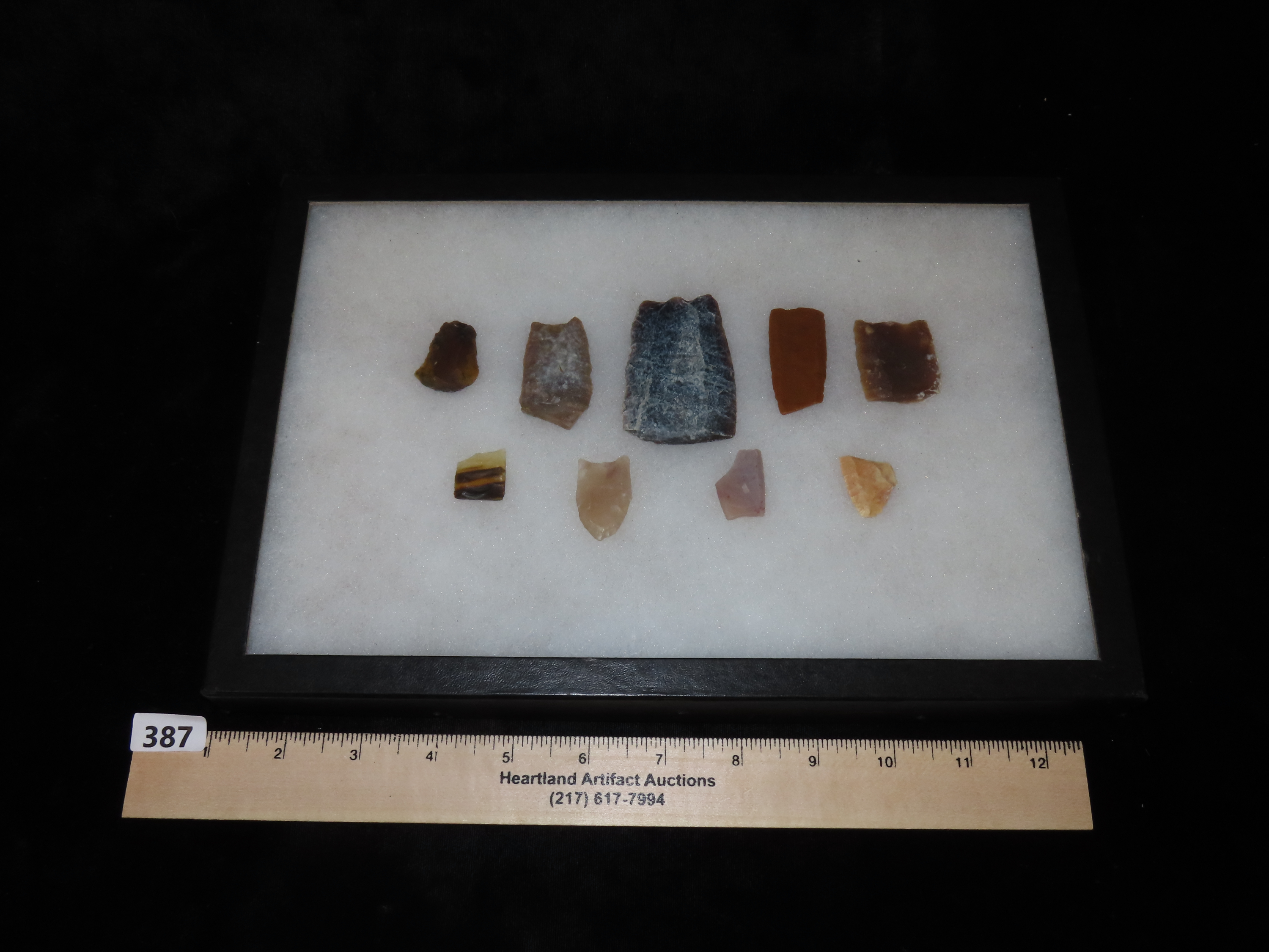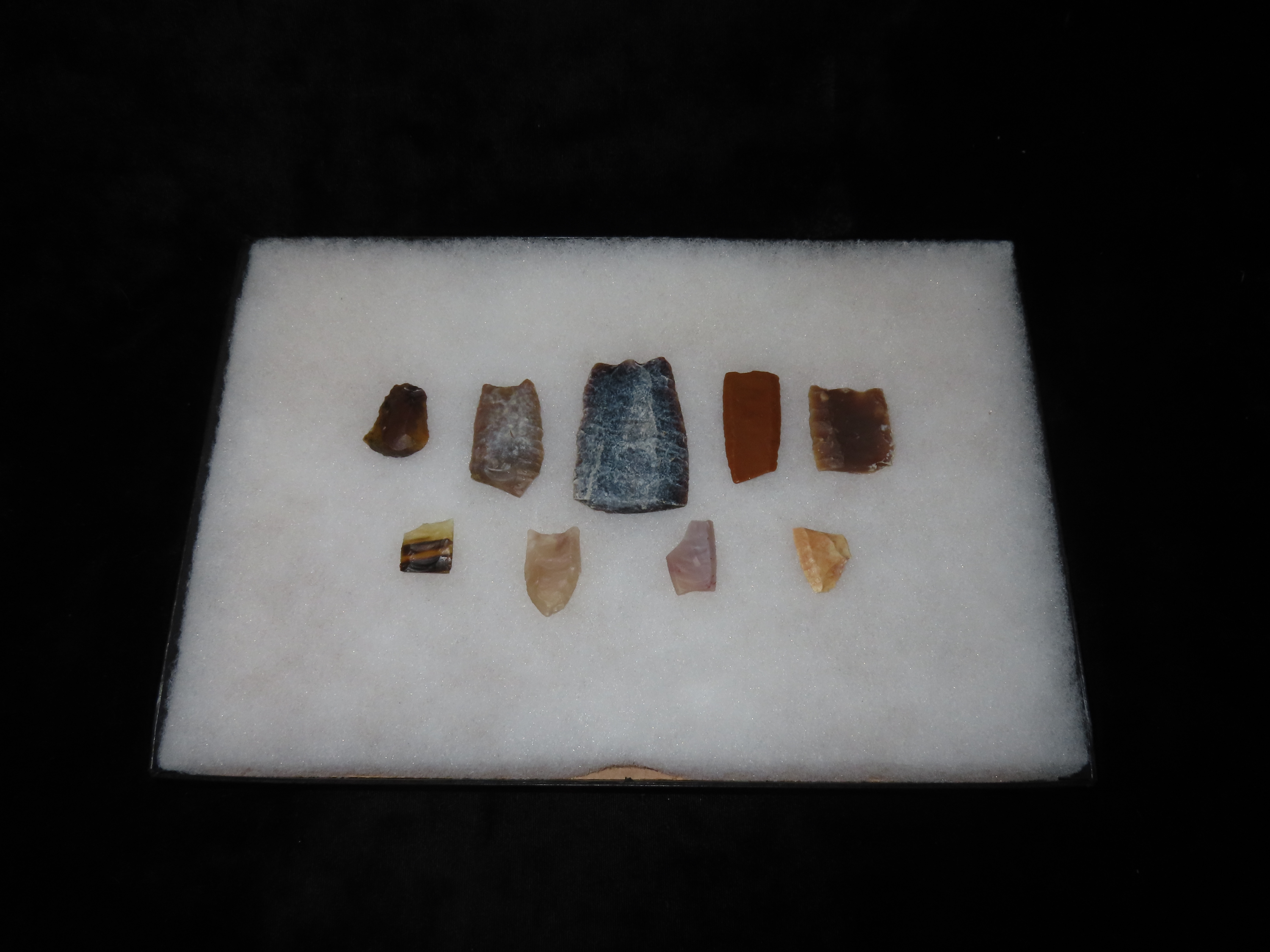 12″ x 8″ Ricker Frame of Outstanding Heart Breakers Paleo Arrowheads Plus Folsum Made of Many Differant Materials