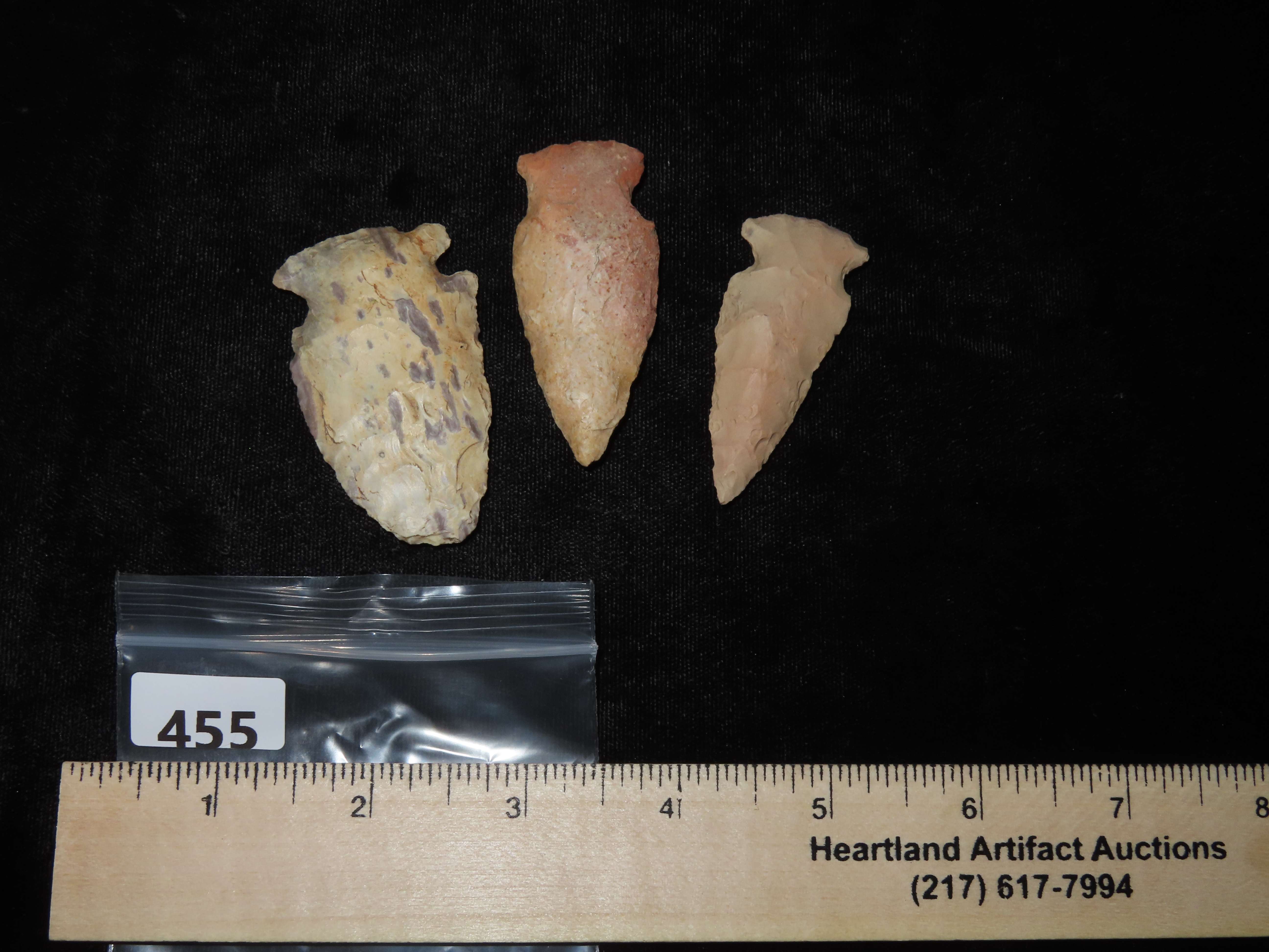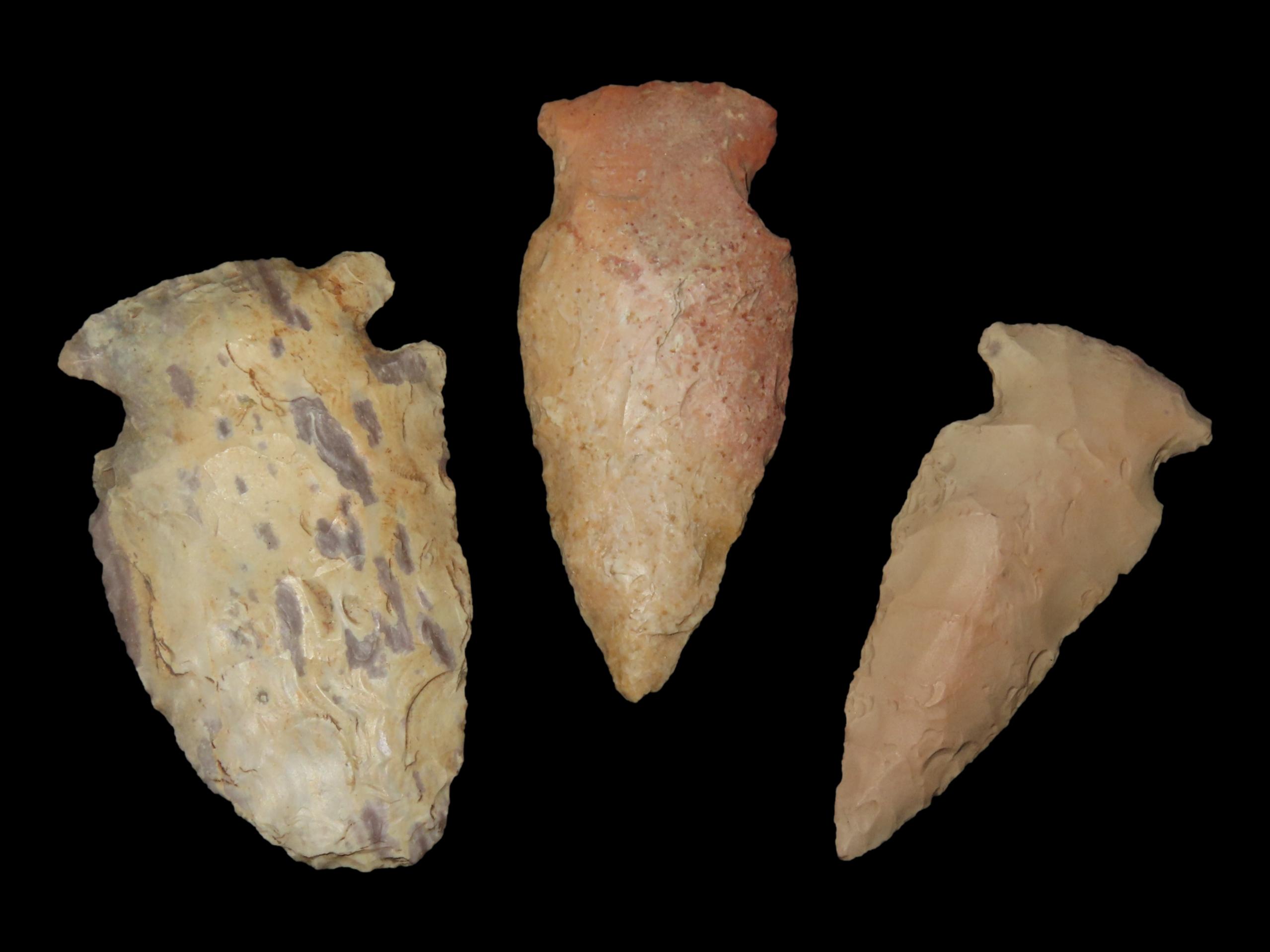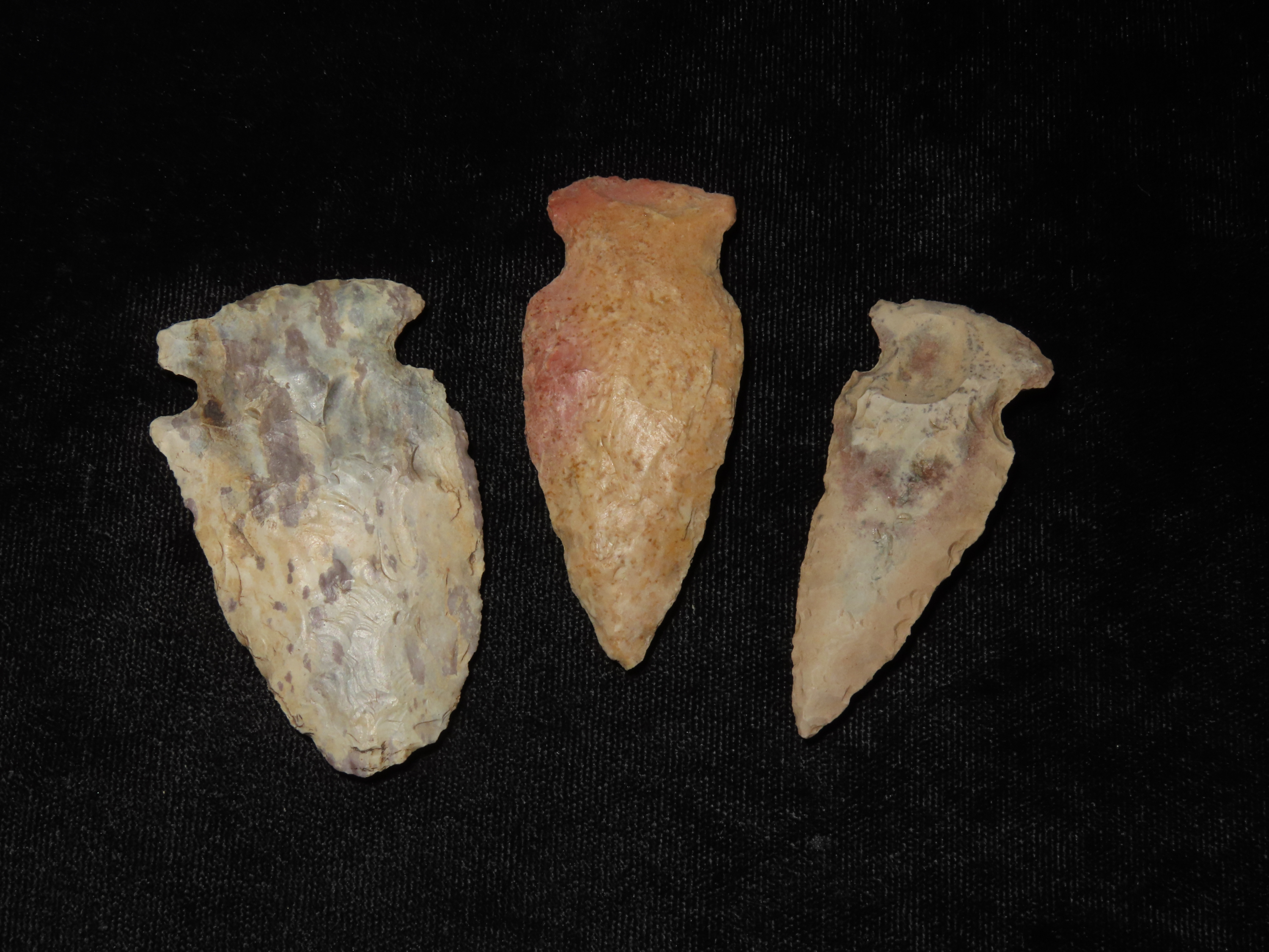 Lot of 3 Nice Colorful Woodland Arrowheads