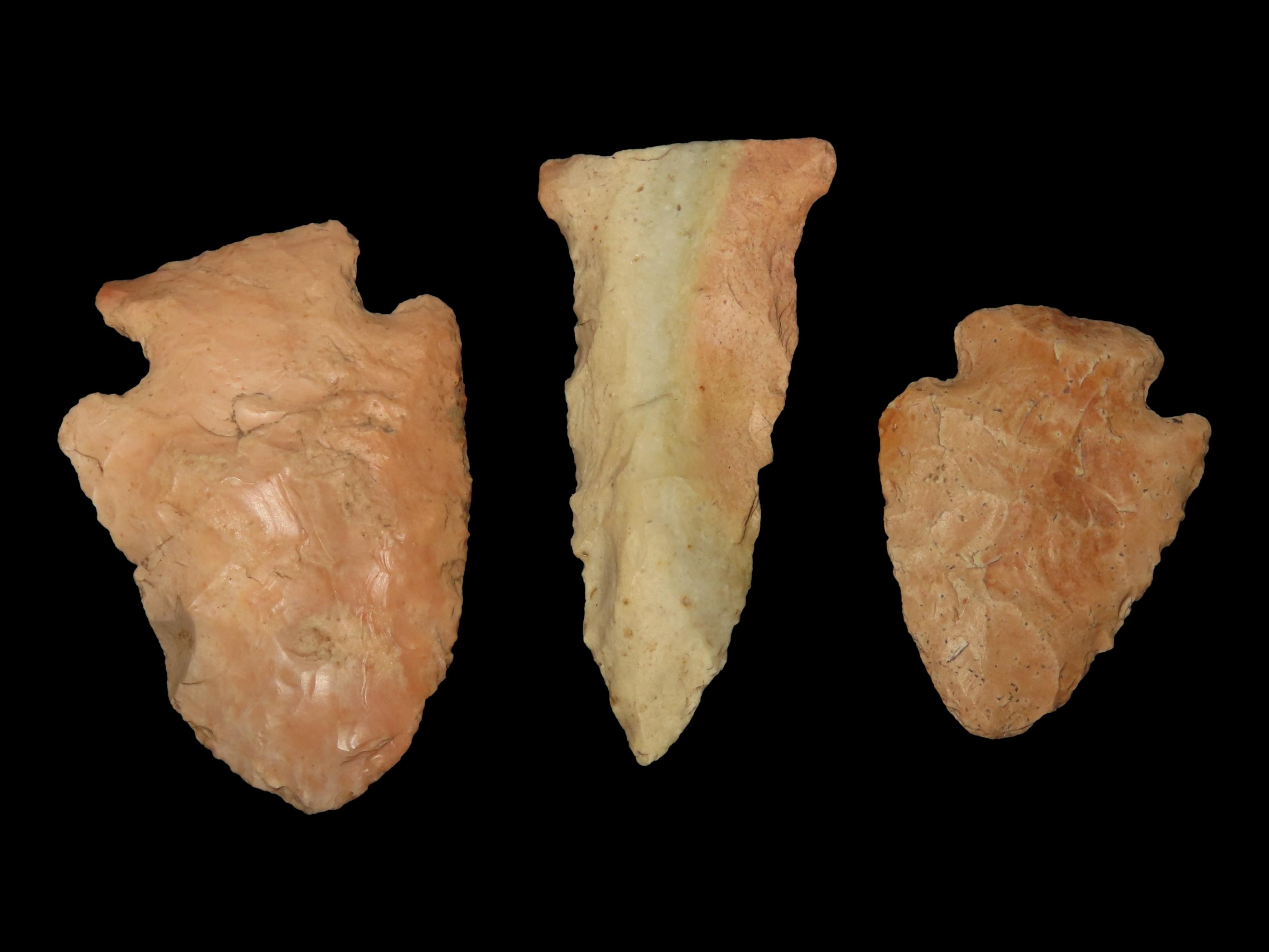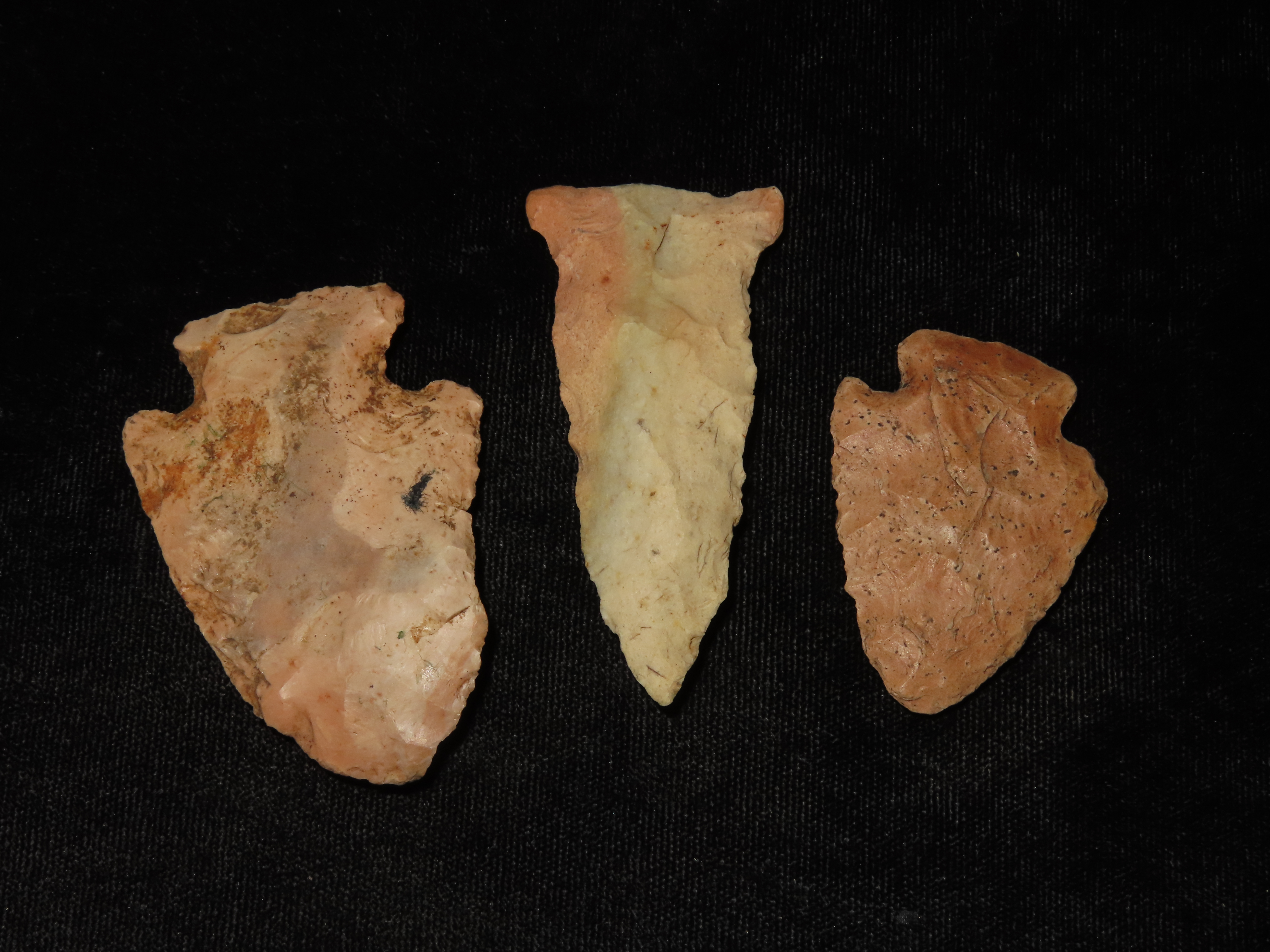 Lot of 3 Nice Colorful Woodland Arrowheads