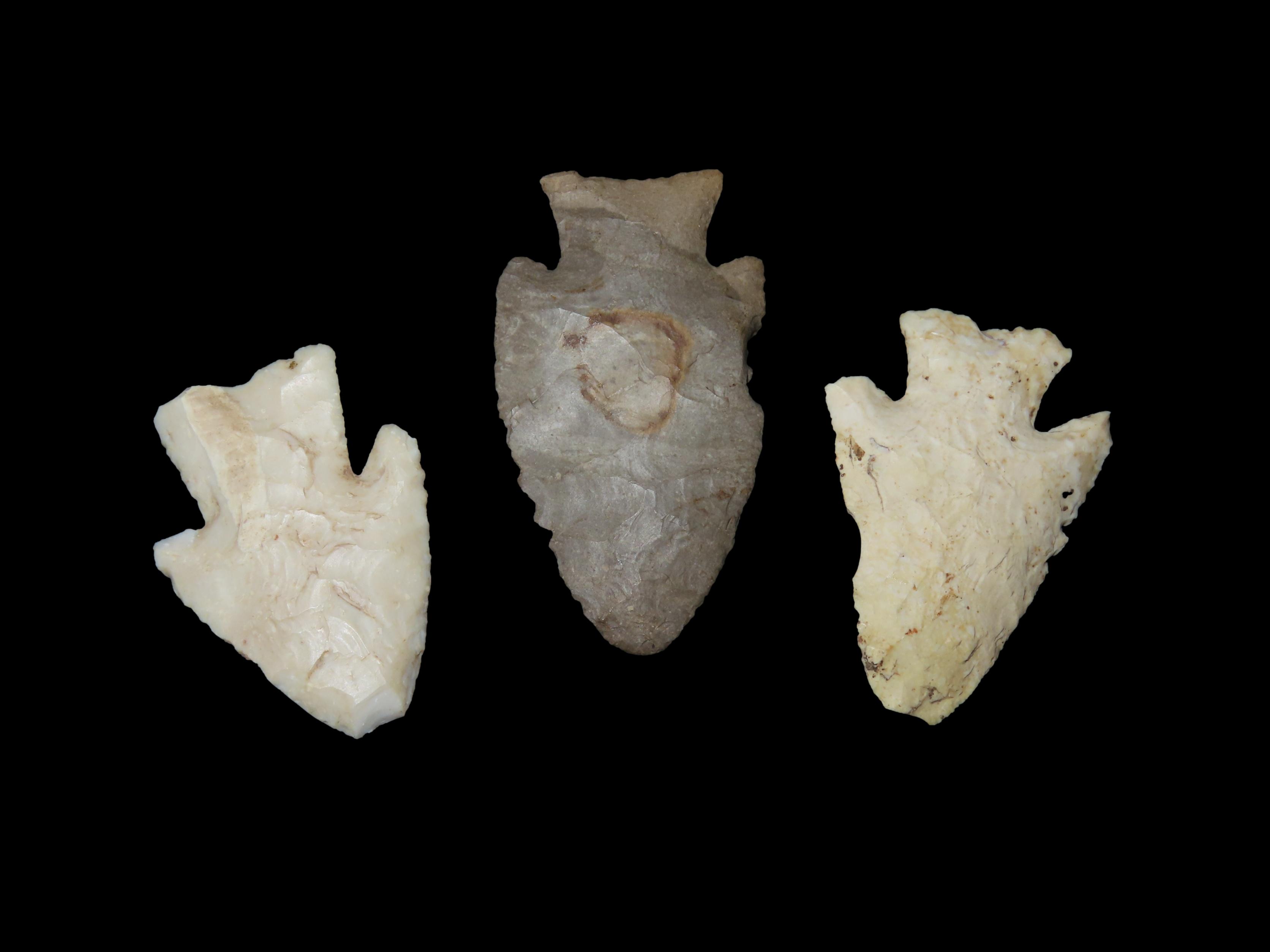 Lot of Three Hardin Arrowheads, Southern Illinois