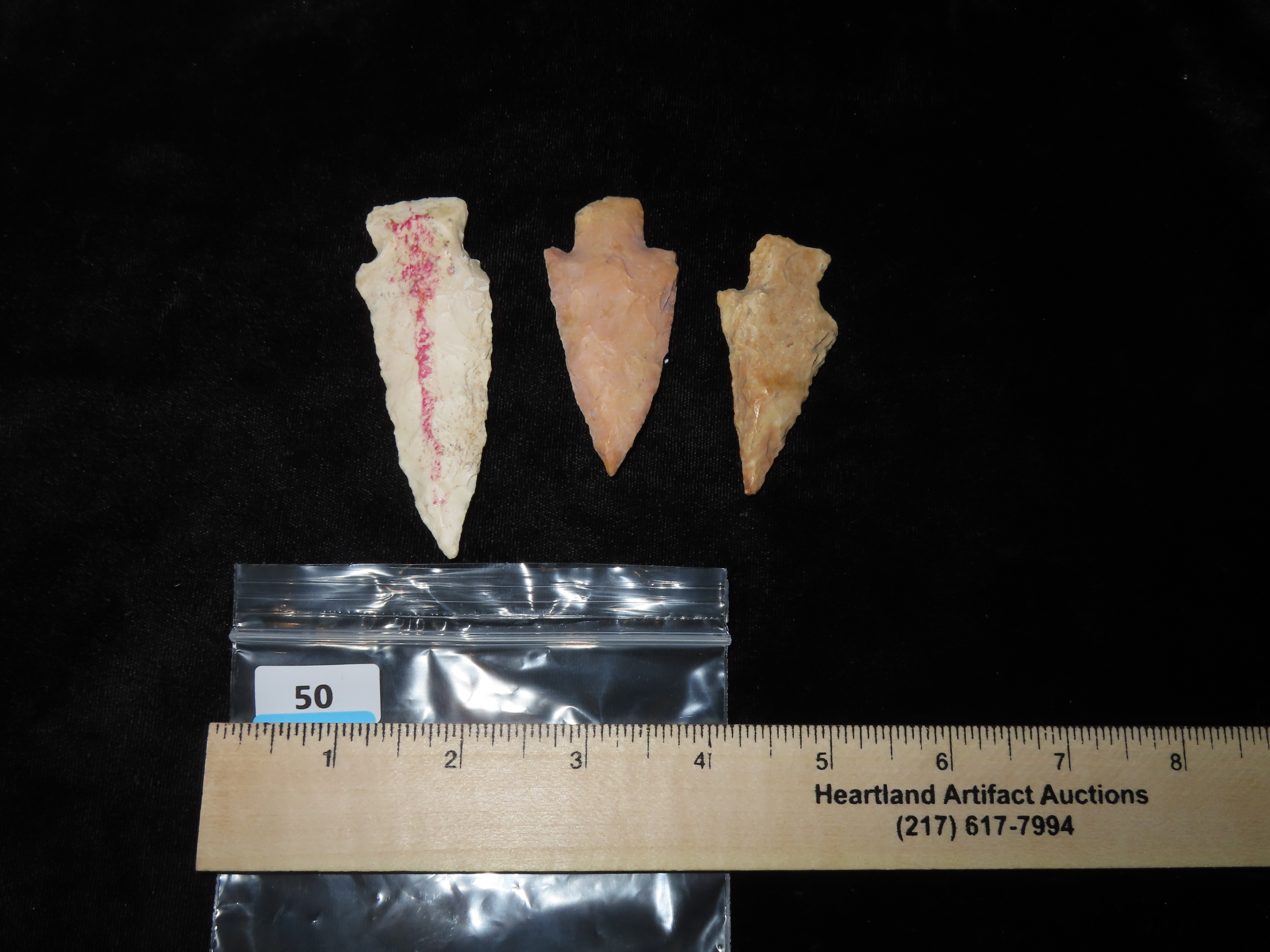 Lot of Three Apple Creek Arrowheads, Found in Central Missouri