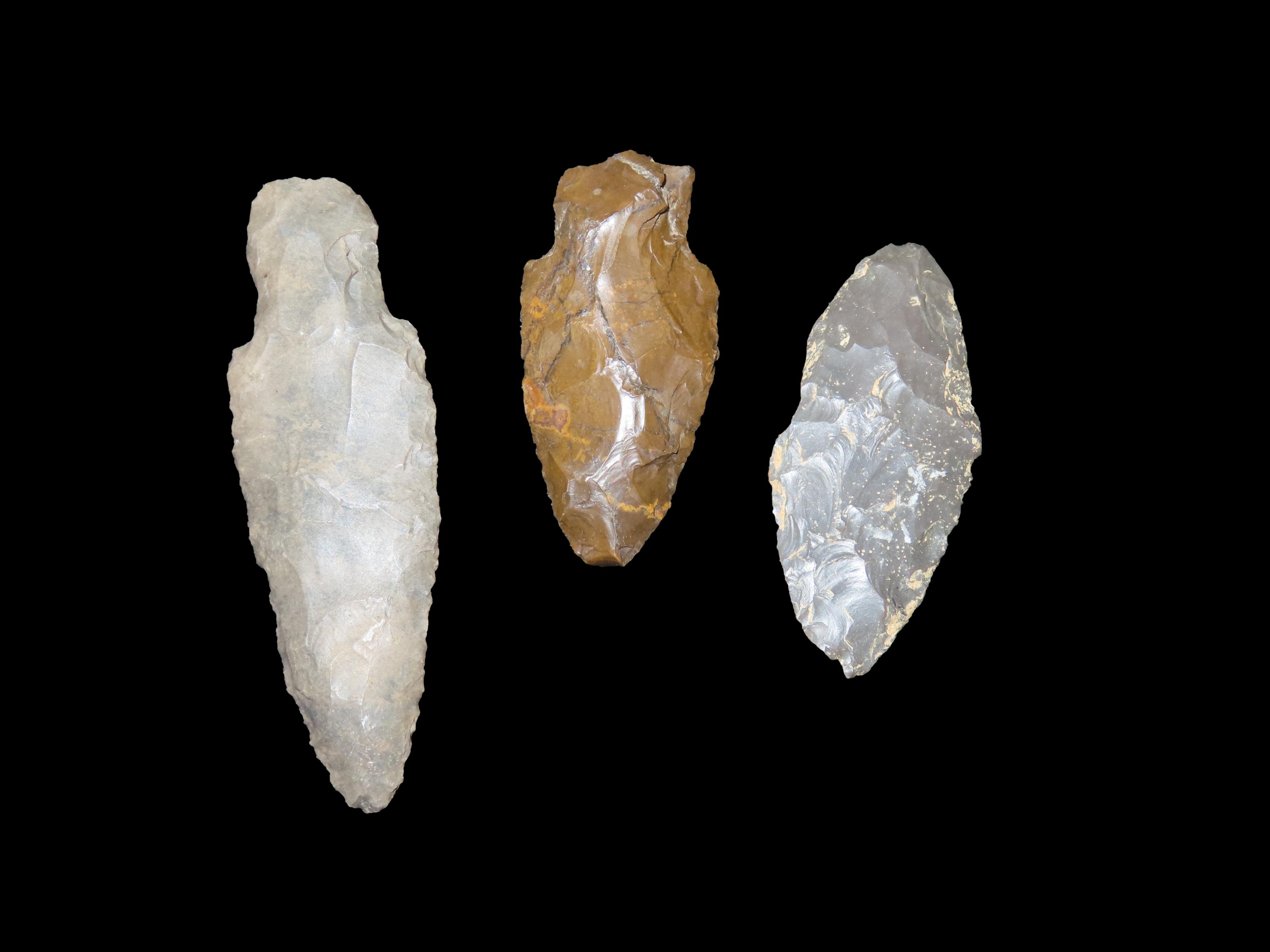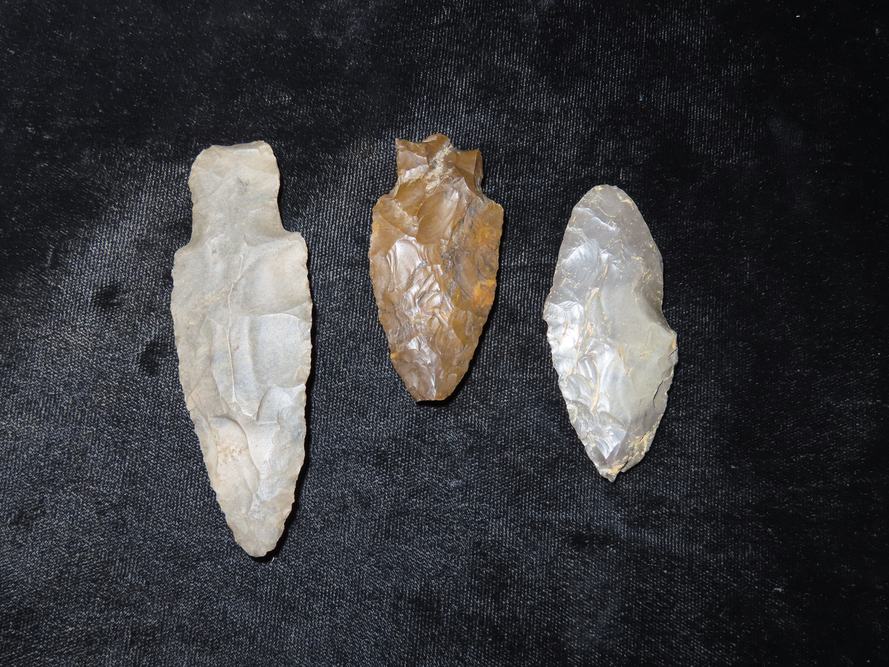 Lot of Three Woodland Arrowheads, Kentucky, Largest Measure at 3 3/8″ and is an Adena Arrowhead