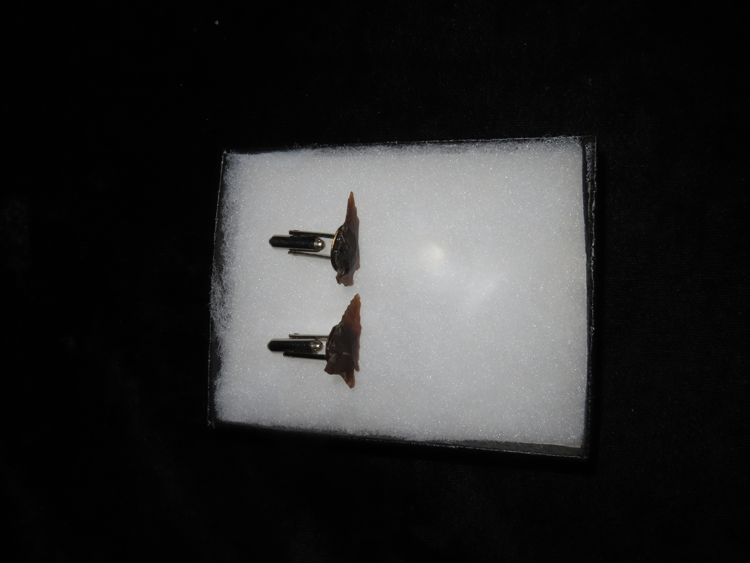 Set of Arrowhead Cufflinks, North Dakota, Knife River Arrowheads