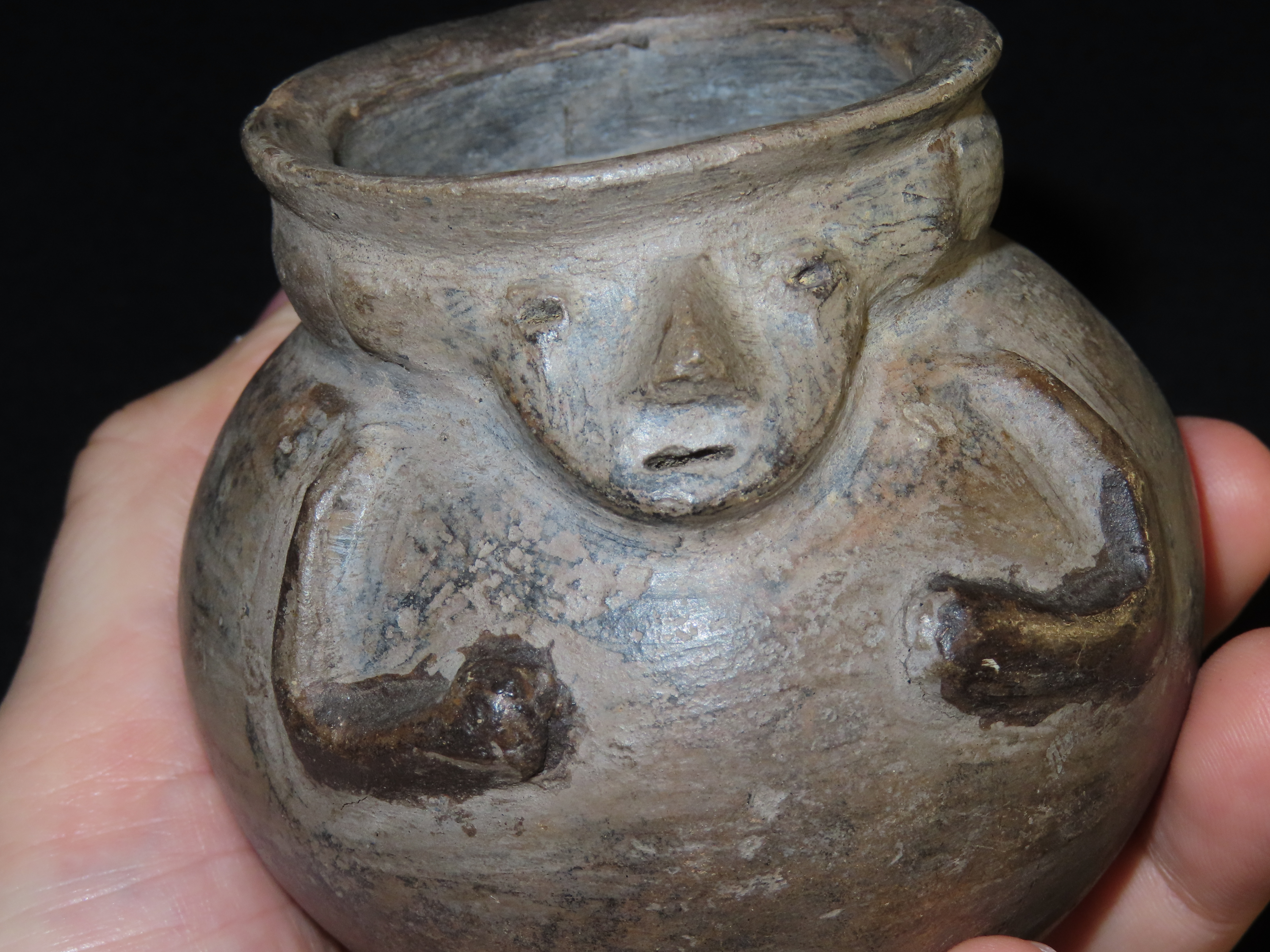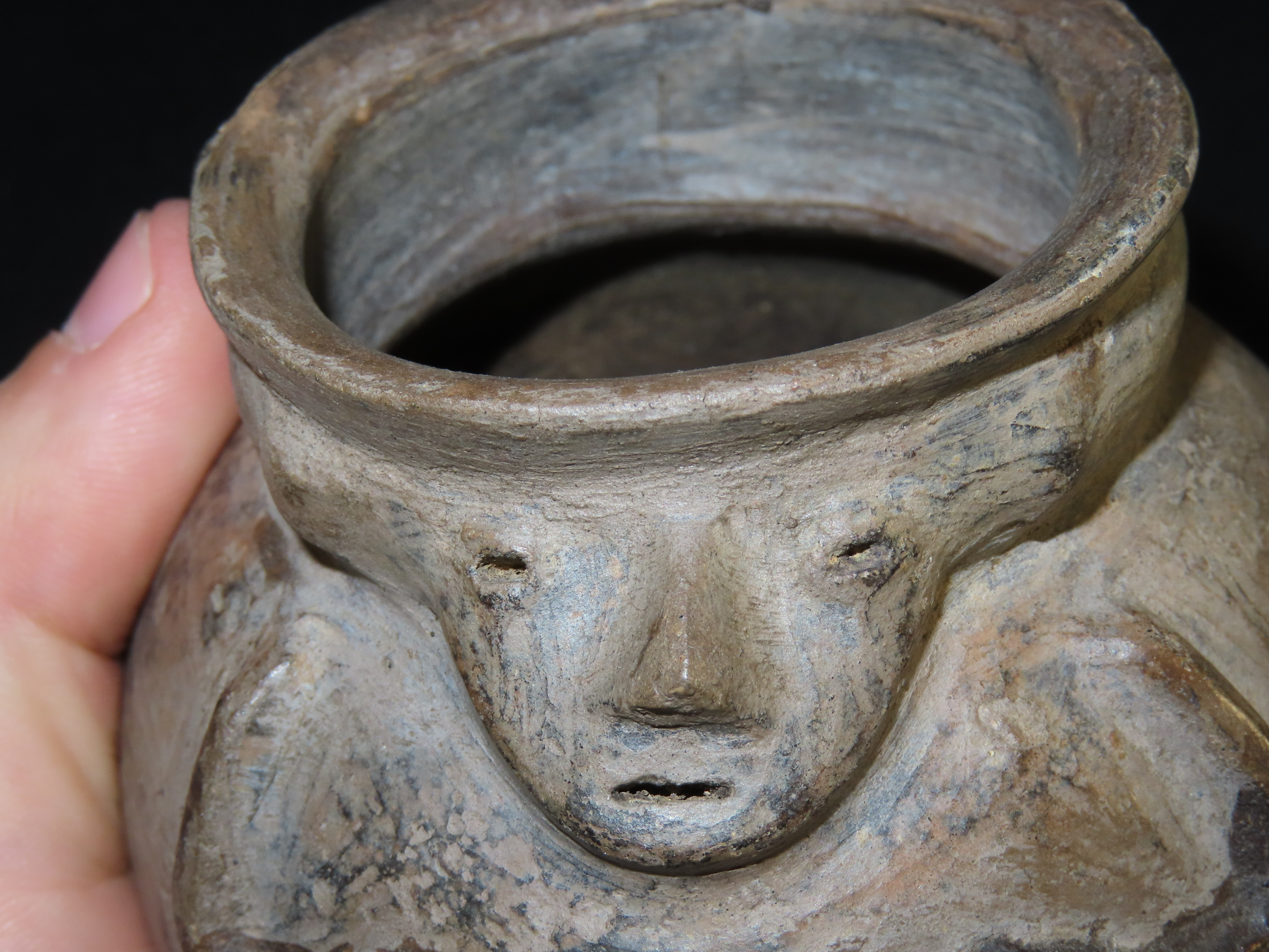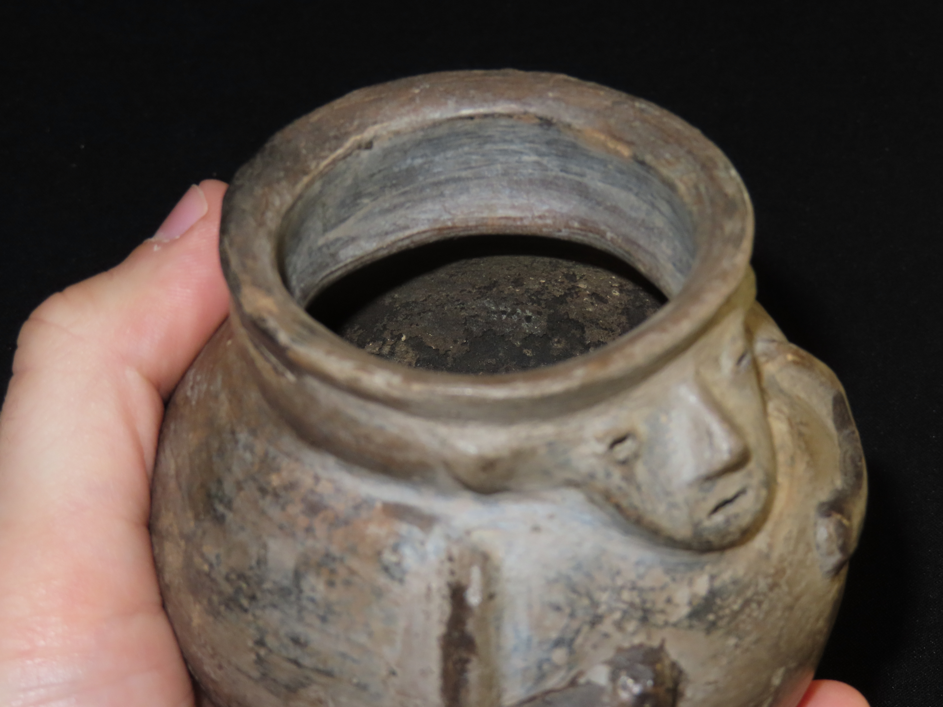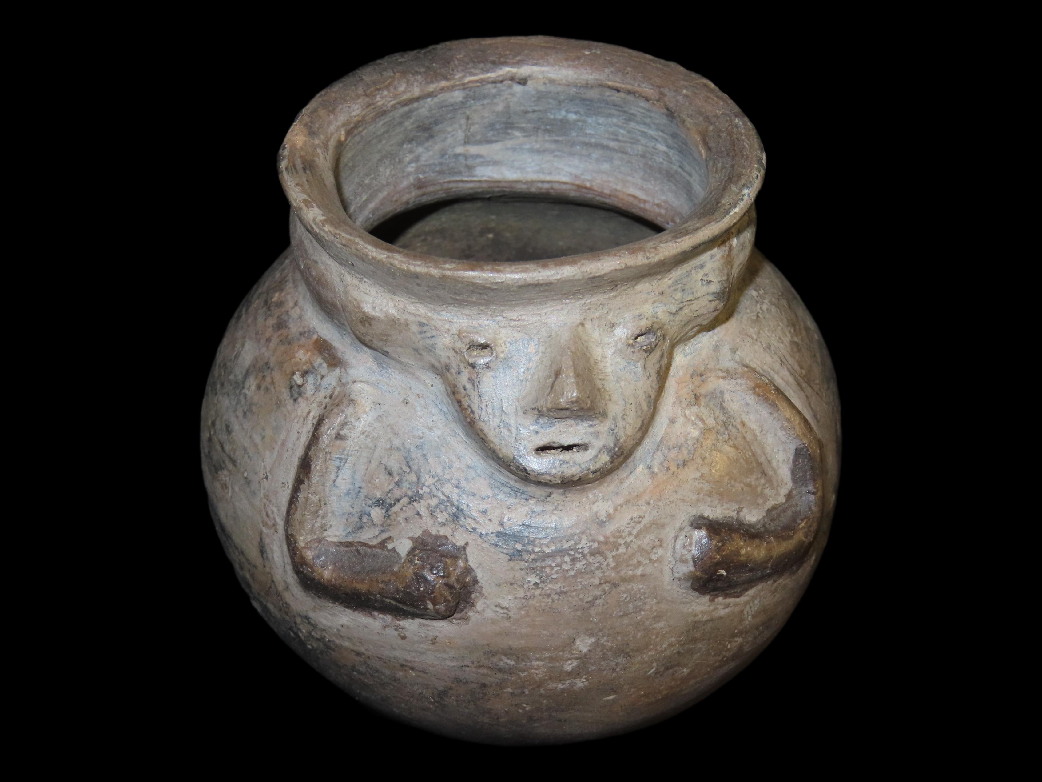 3 3/8″ x 3 3/8″ Pre-Columbian Pottery Quillacinga Bowl with Human Features, Quillacinga Culture, Approx. 200-1100 B.C. Also Continans Reciept from 1986