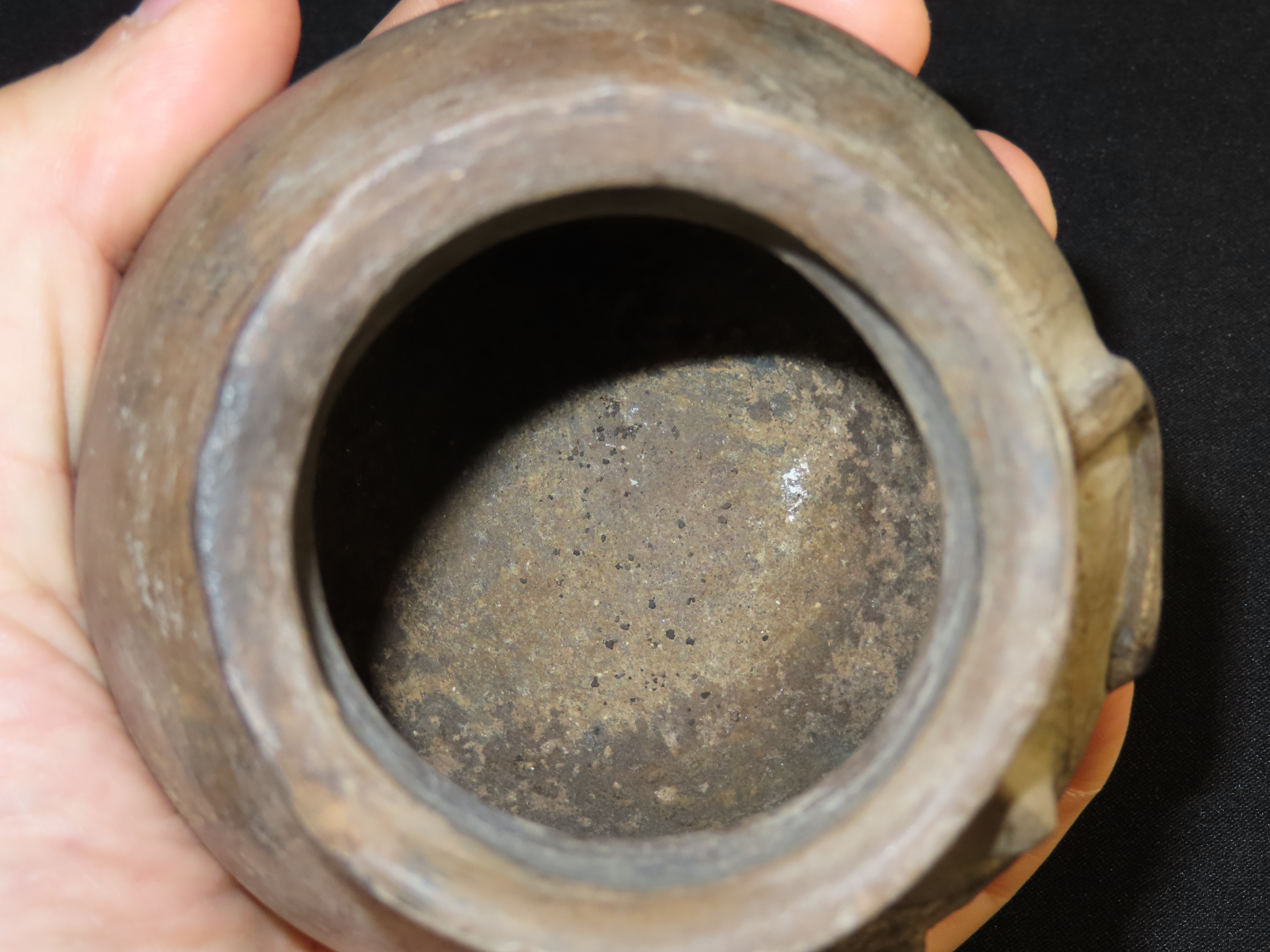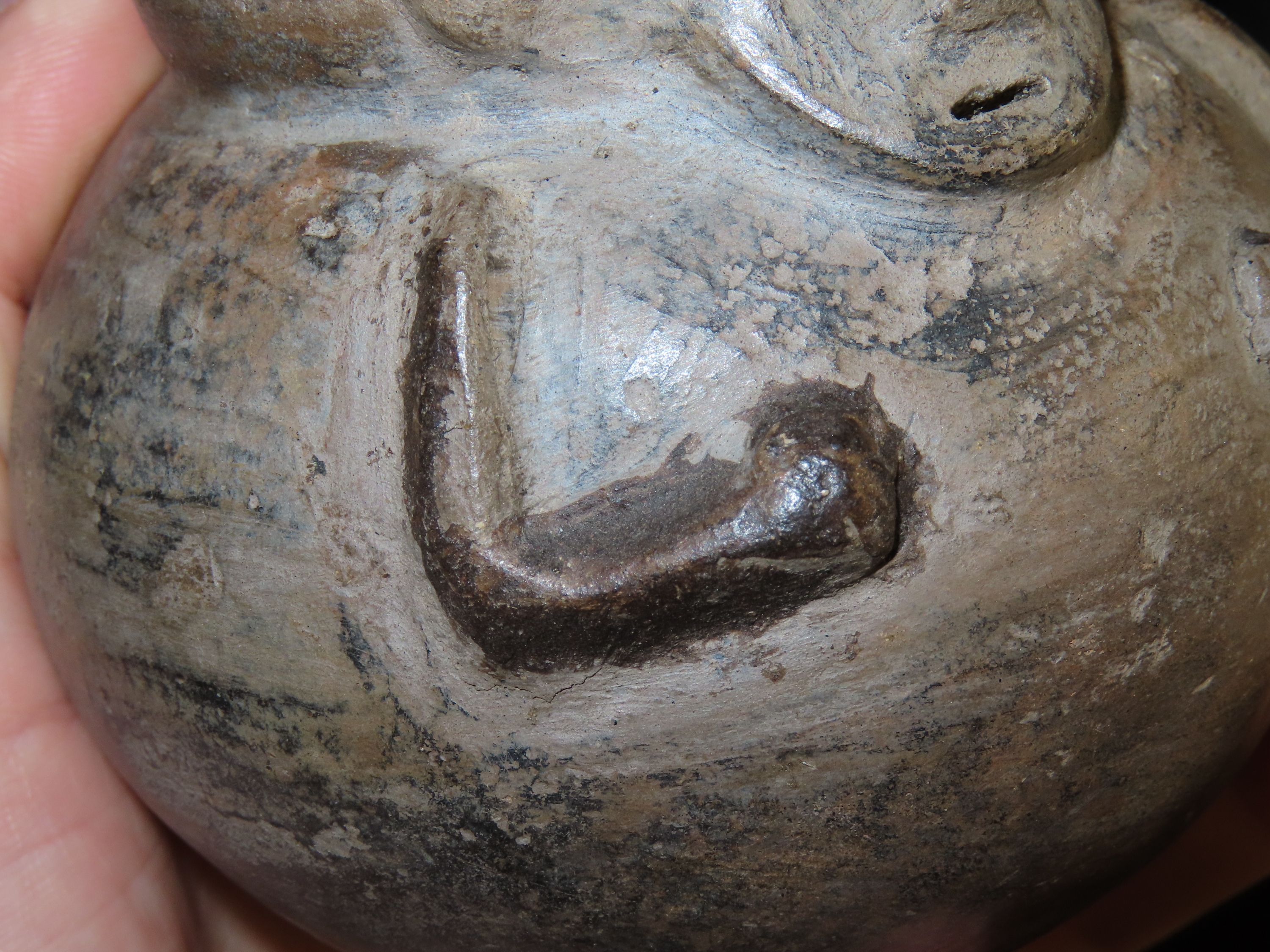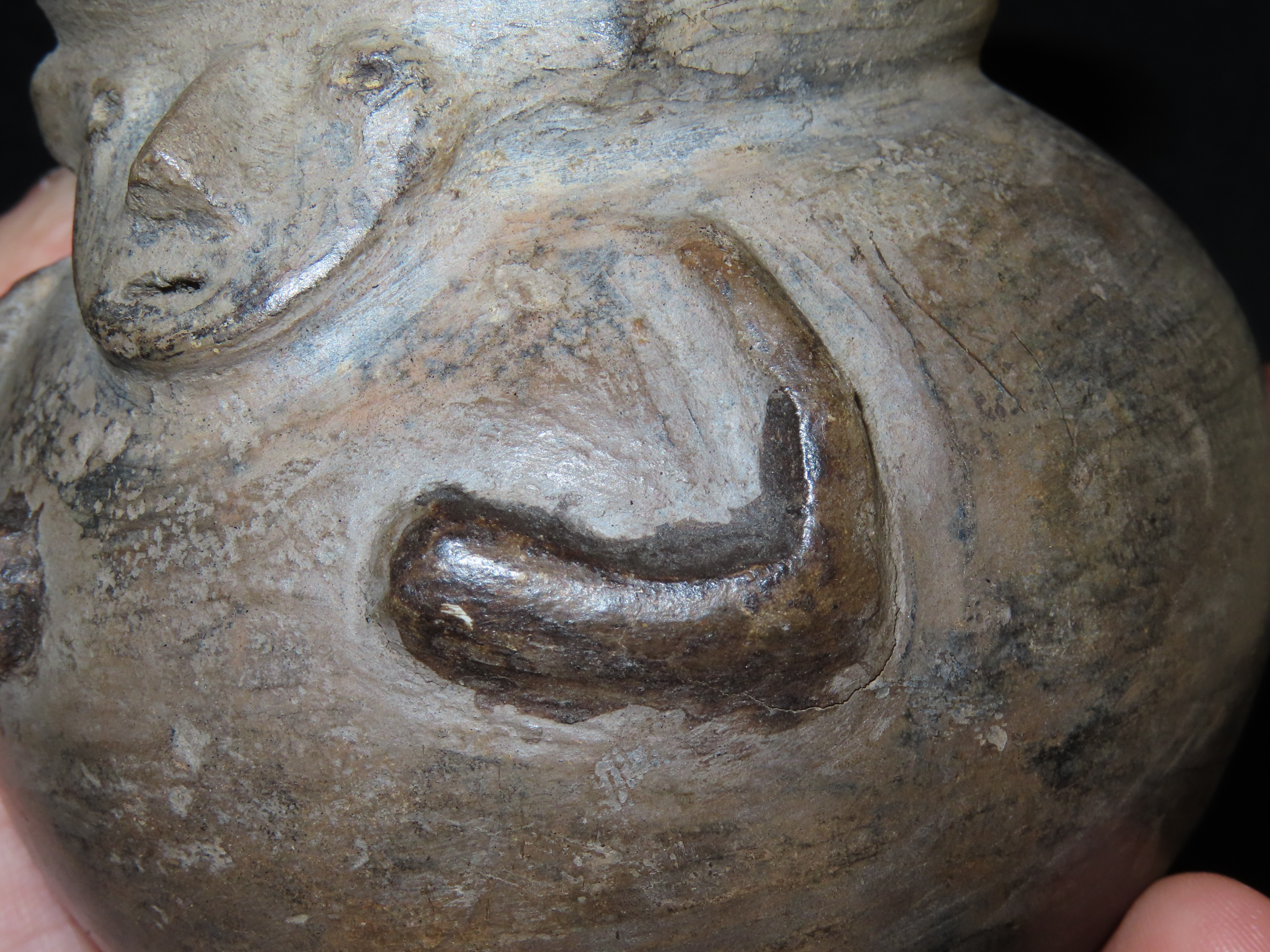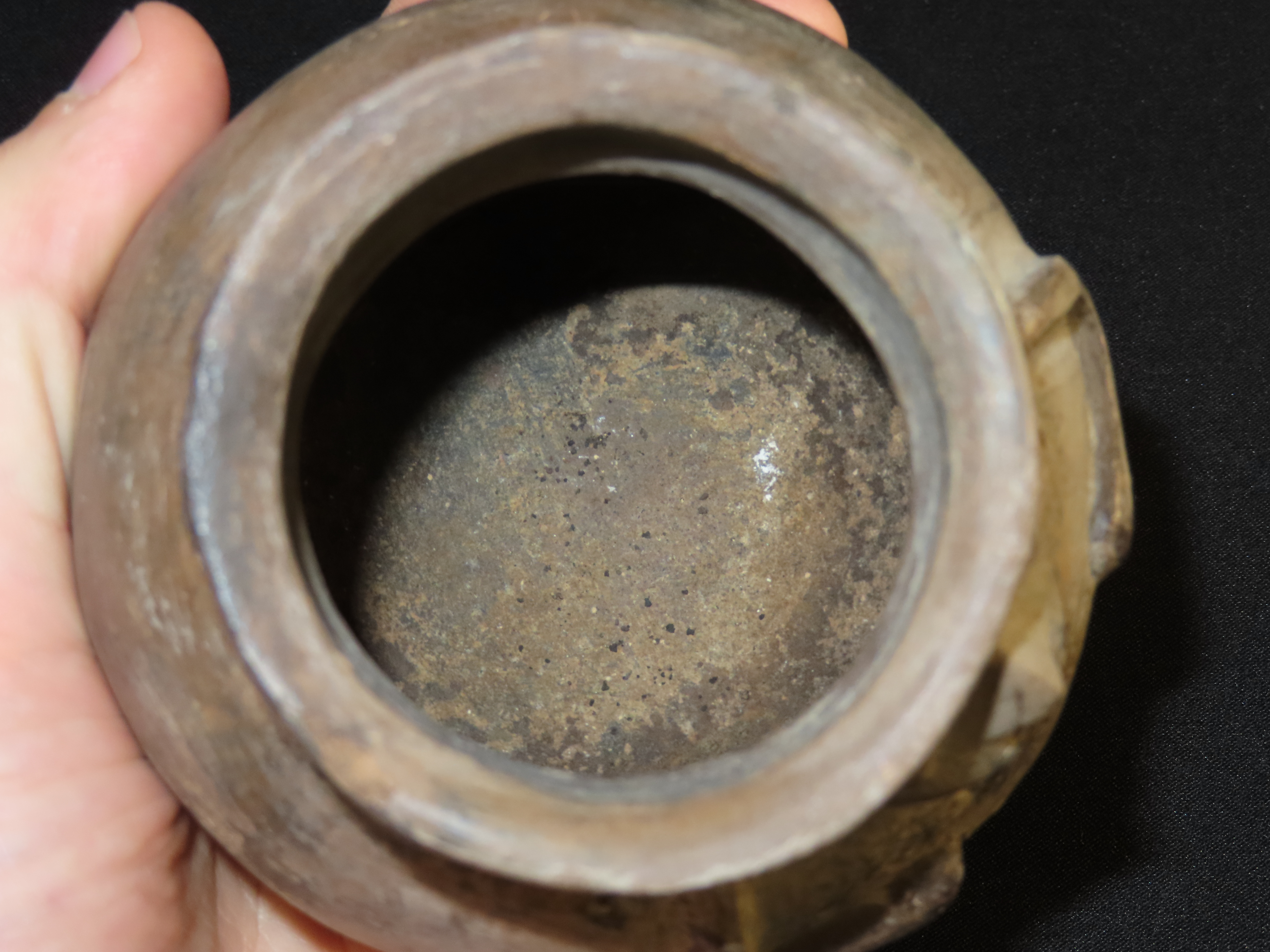 3 3/8″ x 3 3/8″ Pre-Columbian Pottery Quillacinga Bowl with Human Features, Quillacinga Culture, Approx. 200-1100 B.C. Also Continans Reciept from 1986