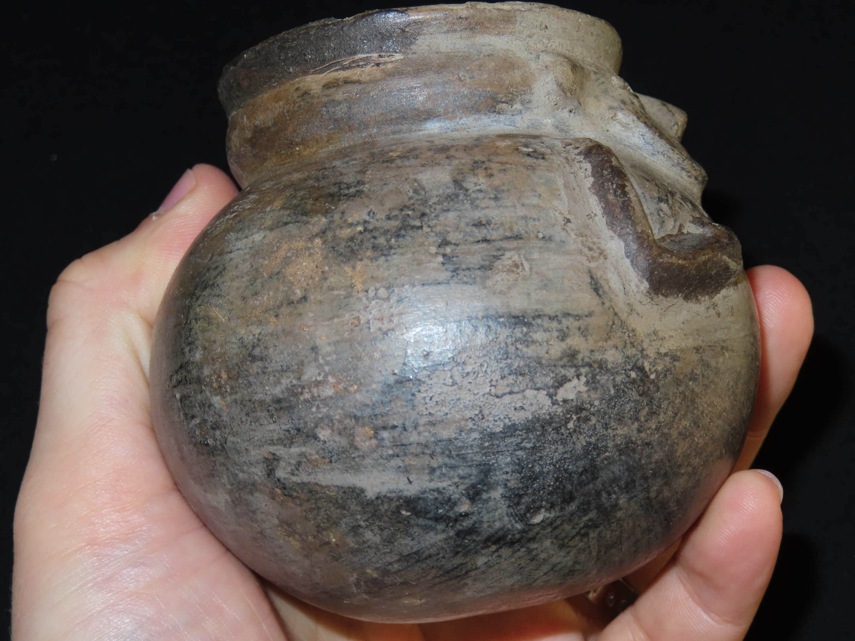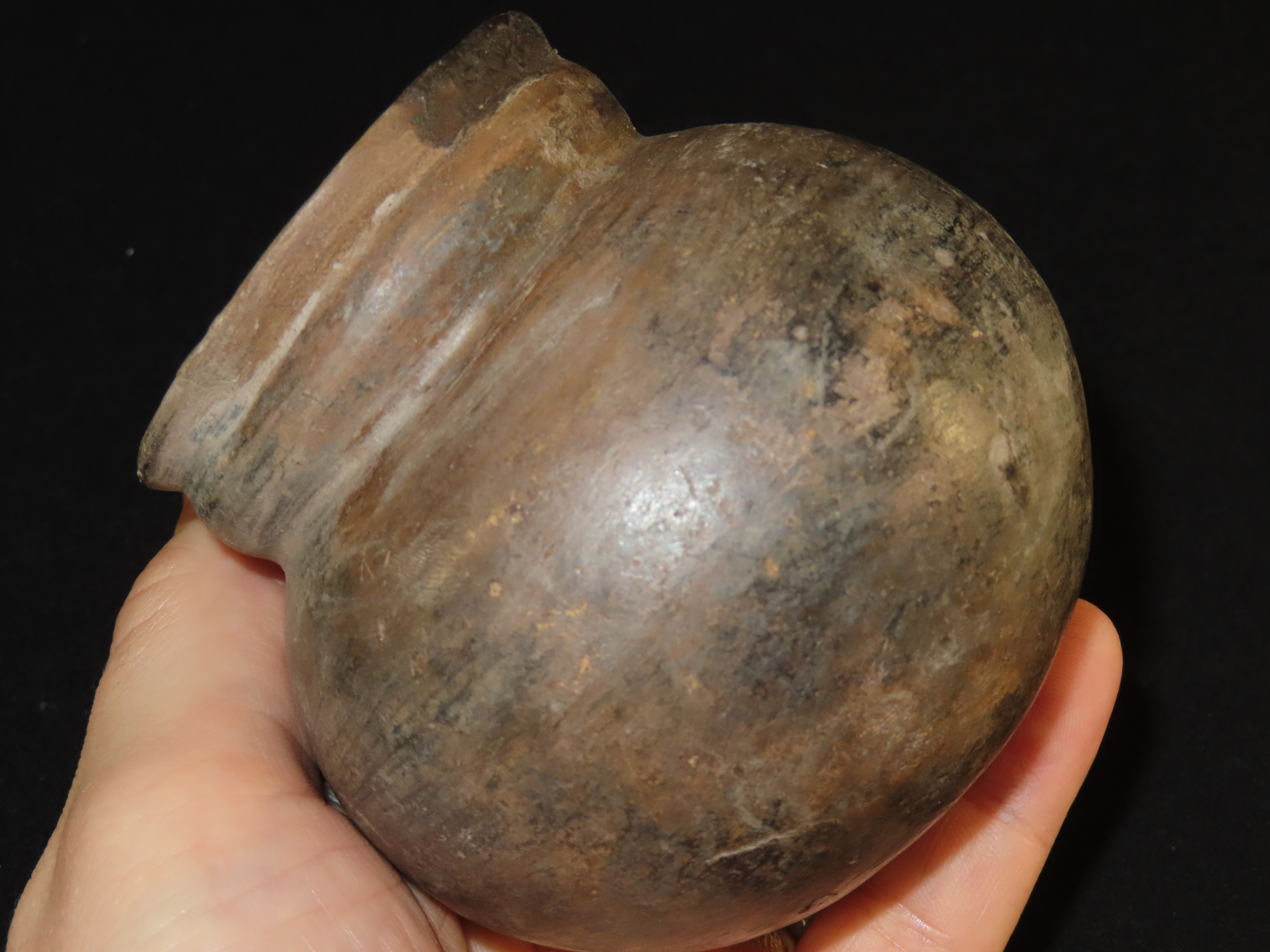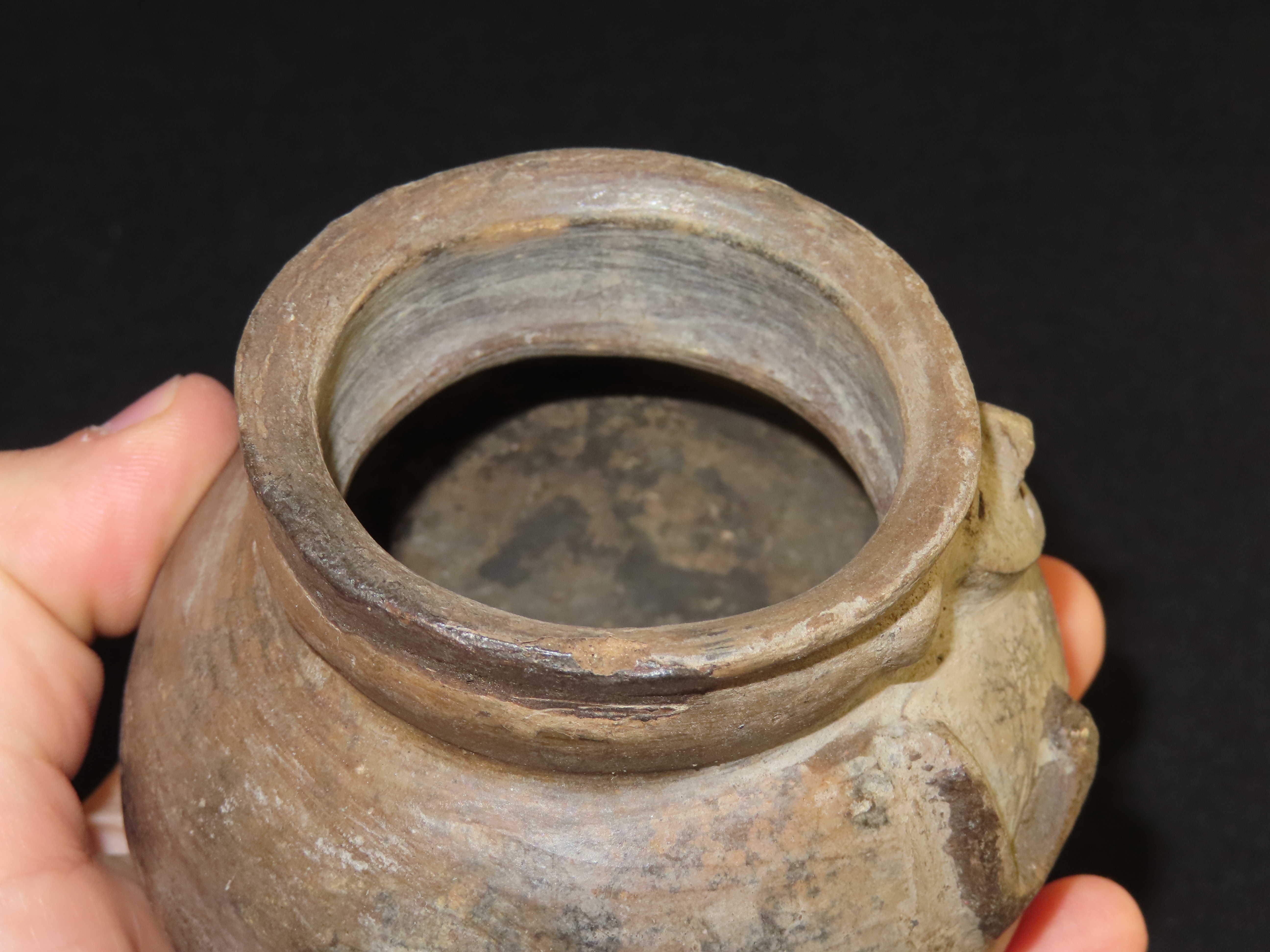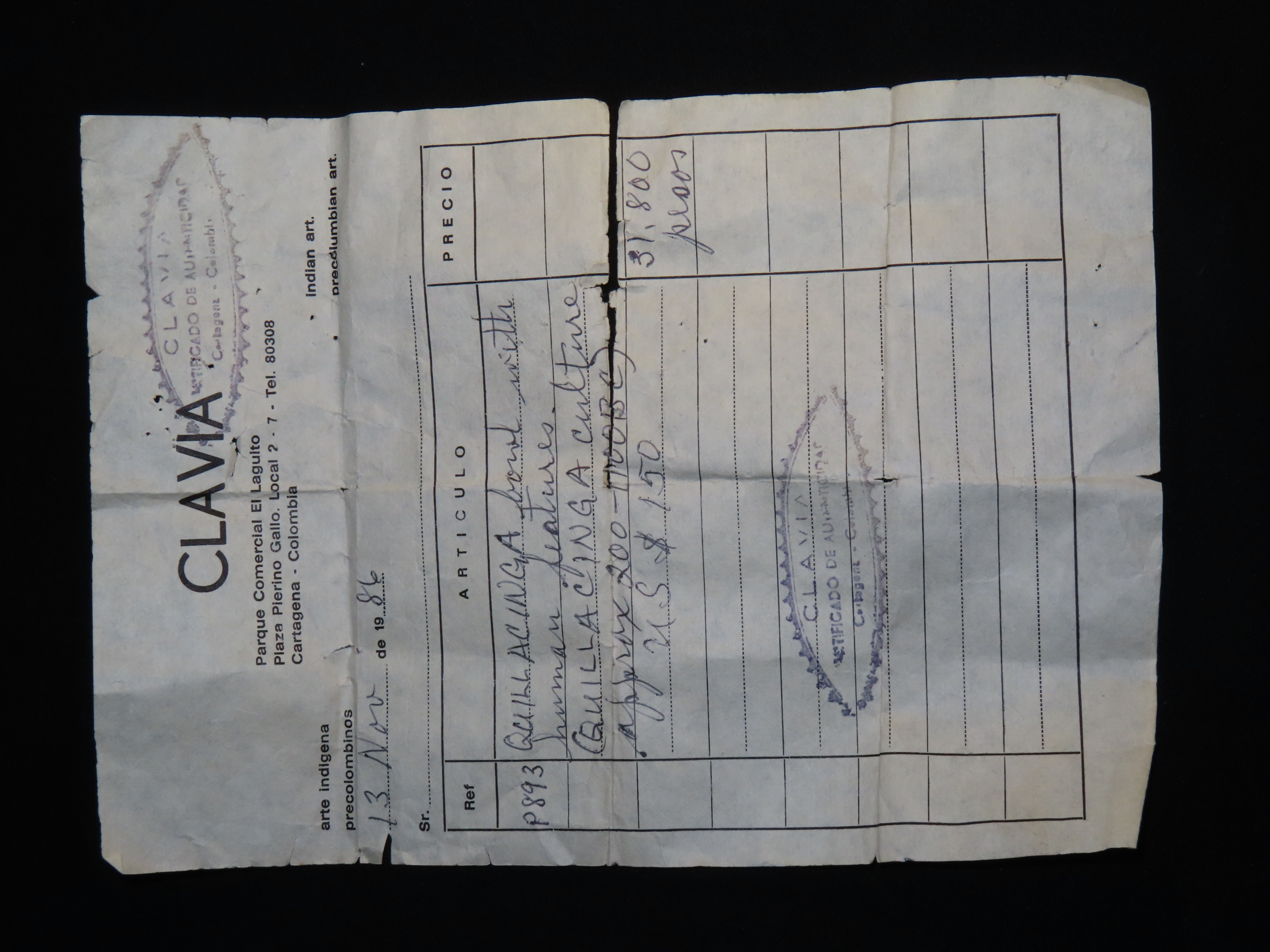 3 3/8″ x 3 3/8″ Pre-Columbian Pottery Quillacinga Bowl with Human Features, Quillacinga Culture, Approx. 200-1100 B.C. Also Continans Reciept from 1986
